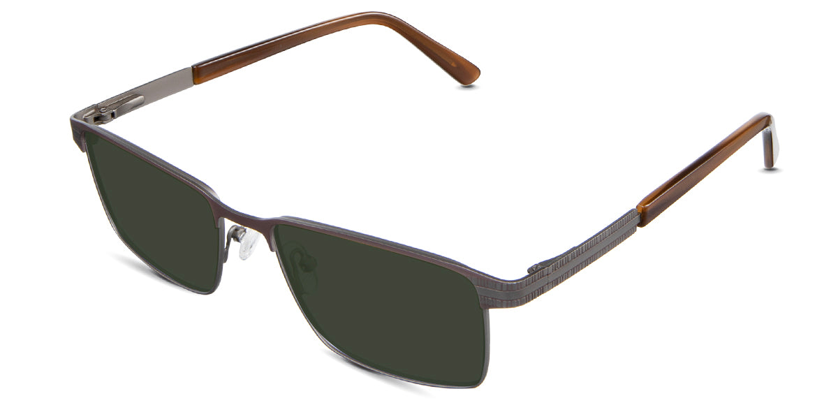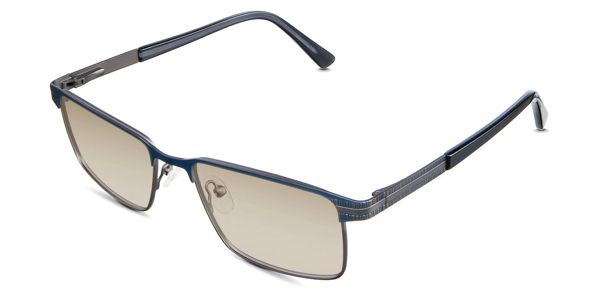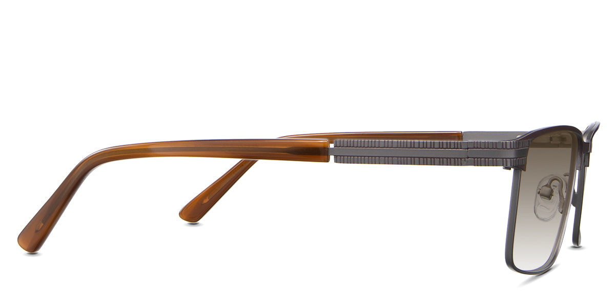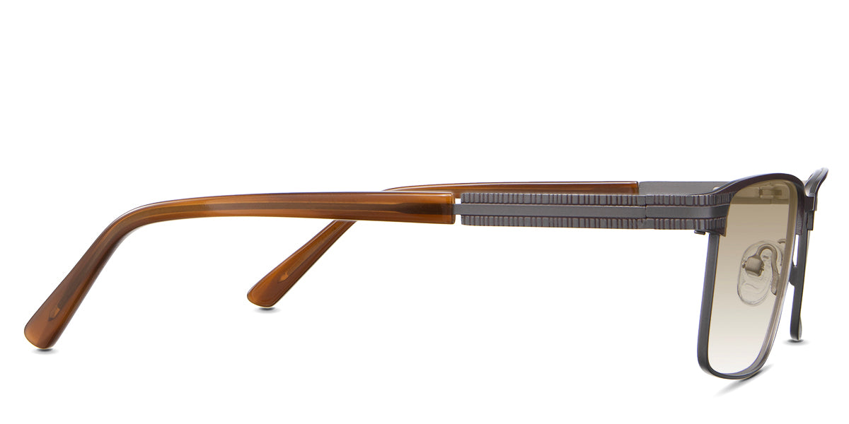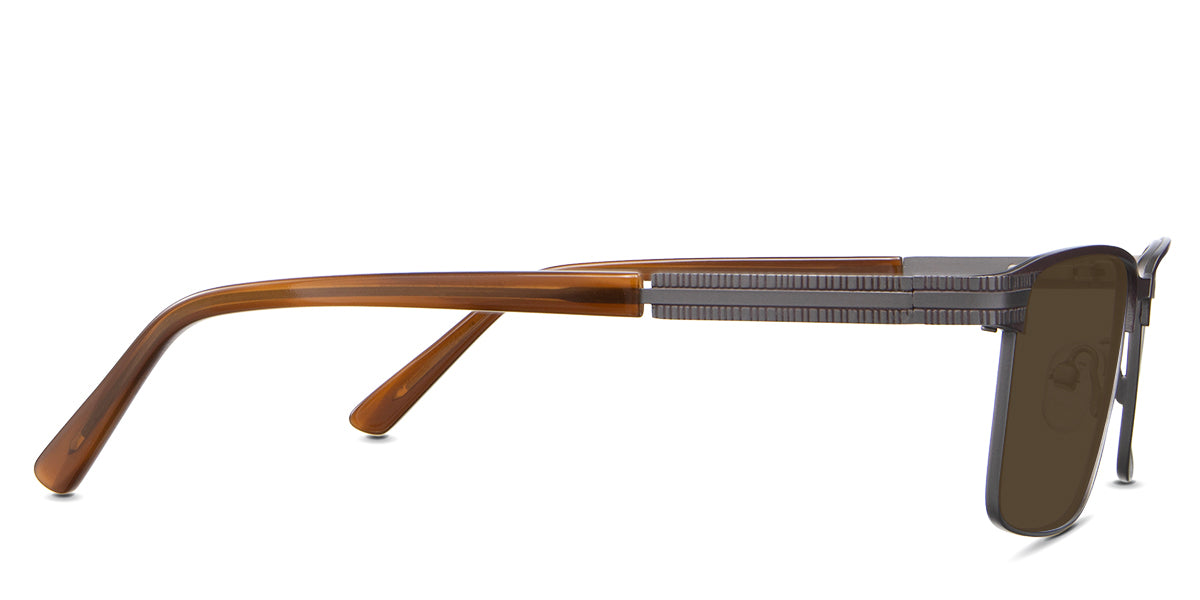 The Benge is a rectangular frame that radiates authority. Its rectangular silhouette and straight bridge speak of unwavering confidence, ensuring you're noticed in every setting. Yet, it's the understated linear ribbed texture on the temples that adds a tactile dimension to this powerhouse. Trace your fingers along, and you'll instantly feel the power of design.