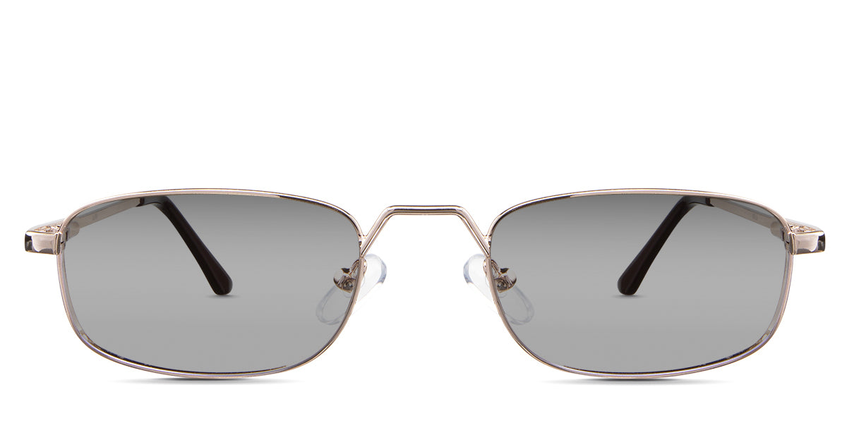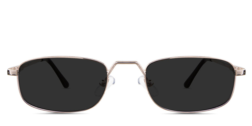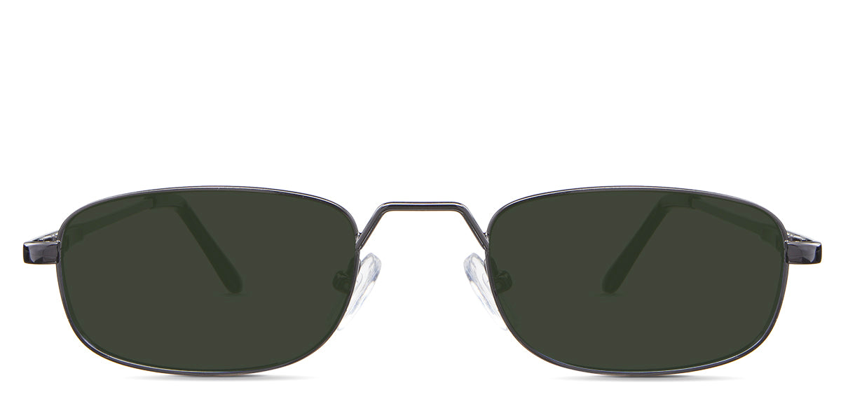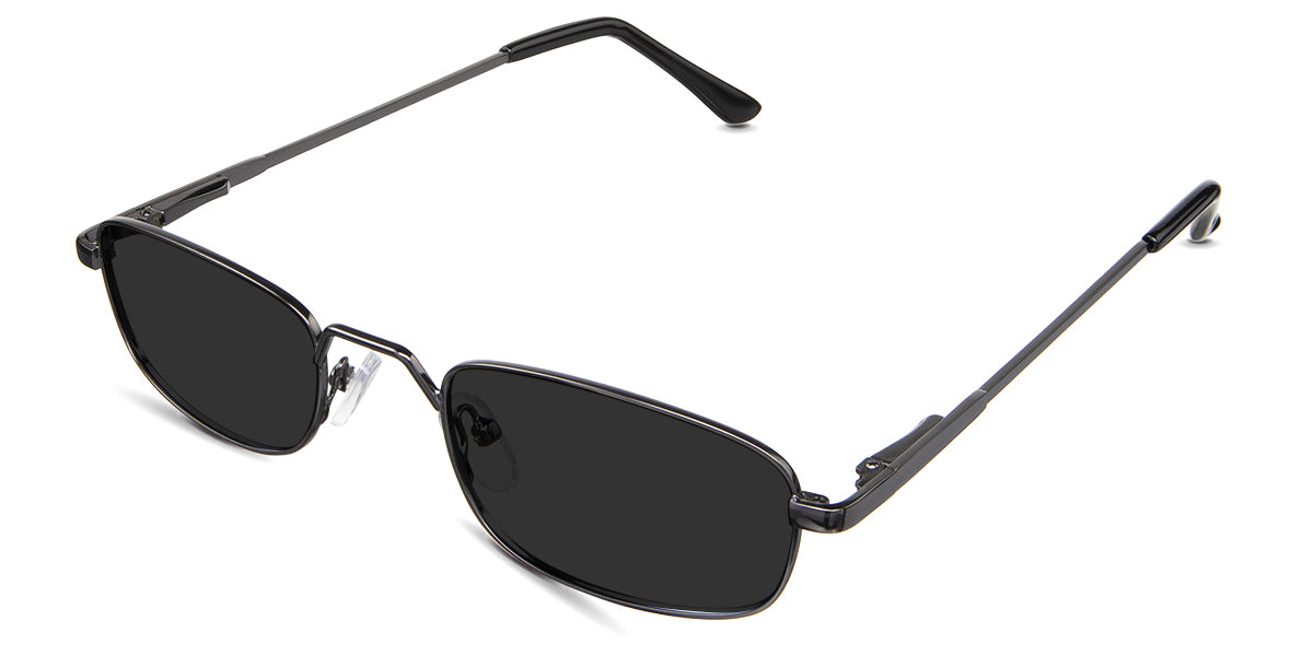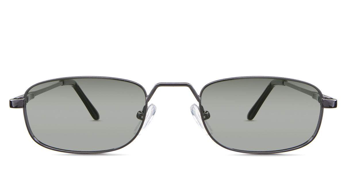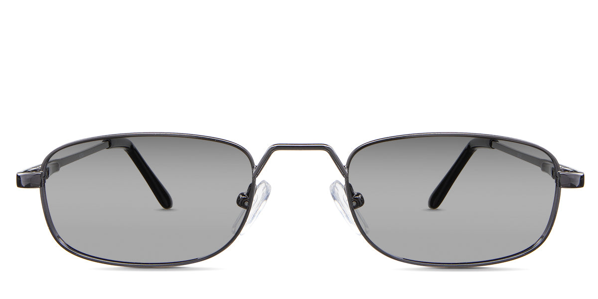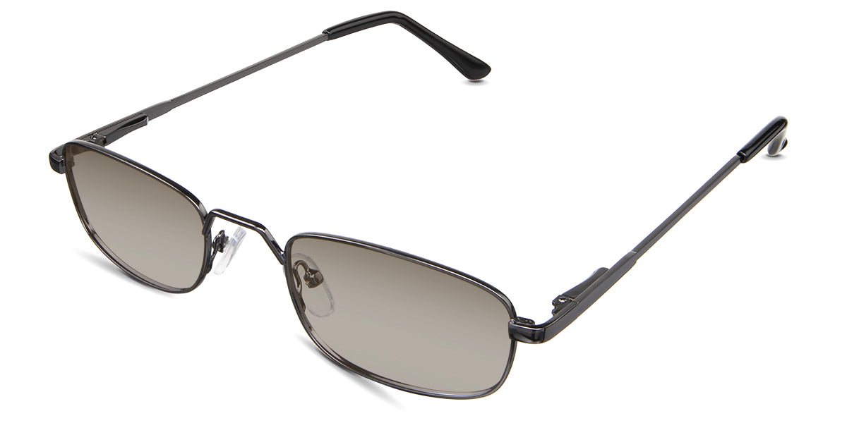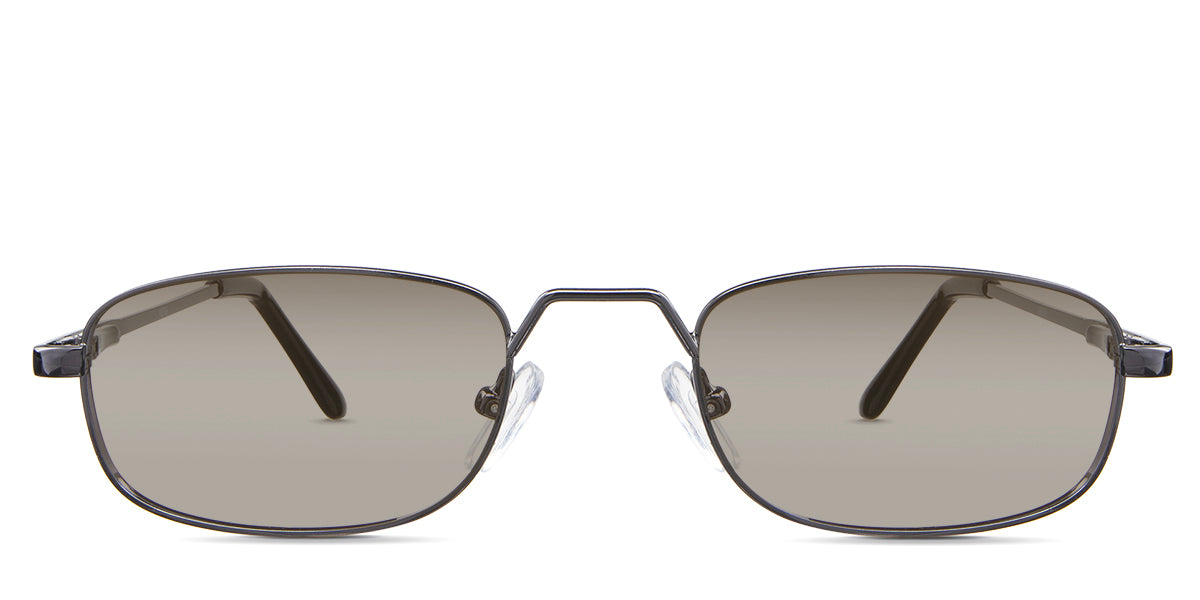 Zoey black tinted Standard Solid in the Gunmetal variant - is a full-rimmed metal frame with a high hat-shaped nose bridge and an acetate temple tip.