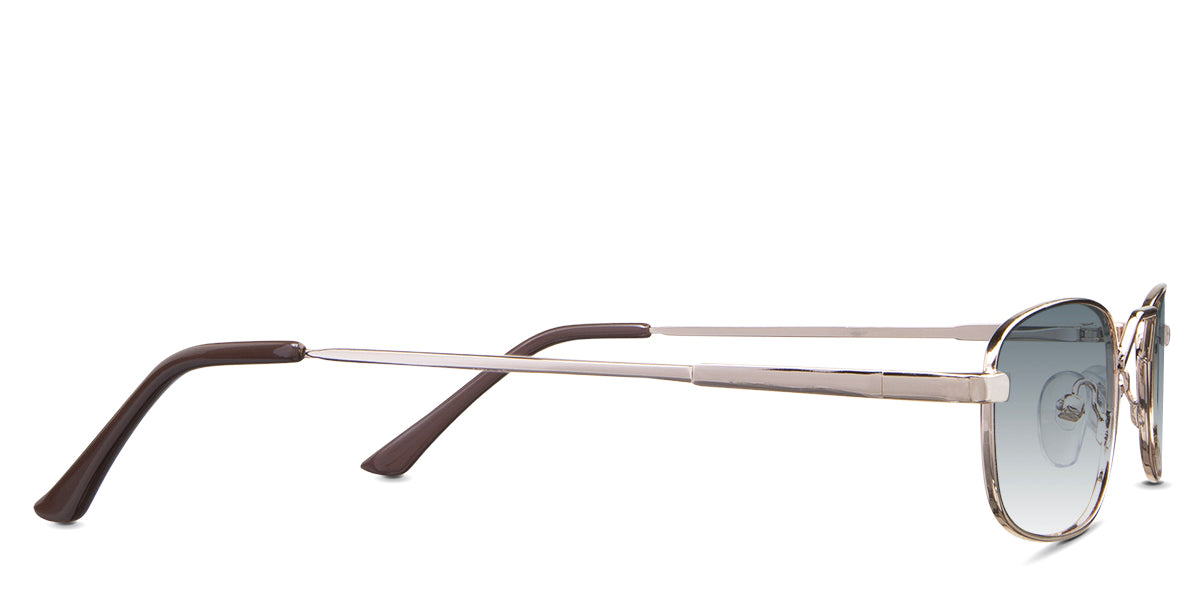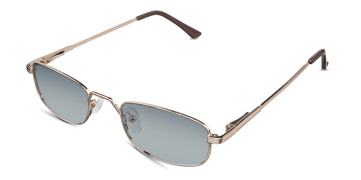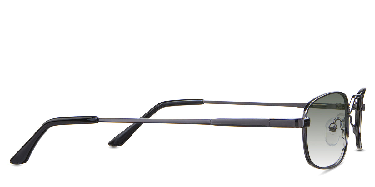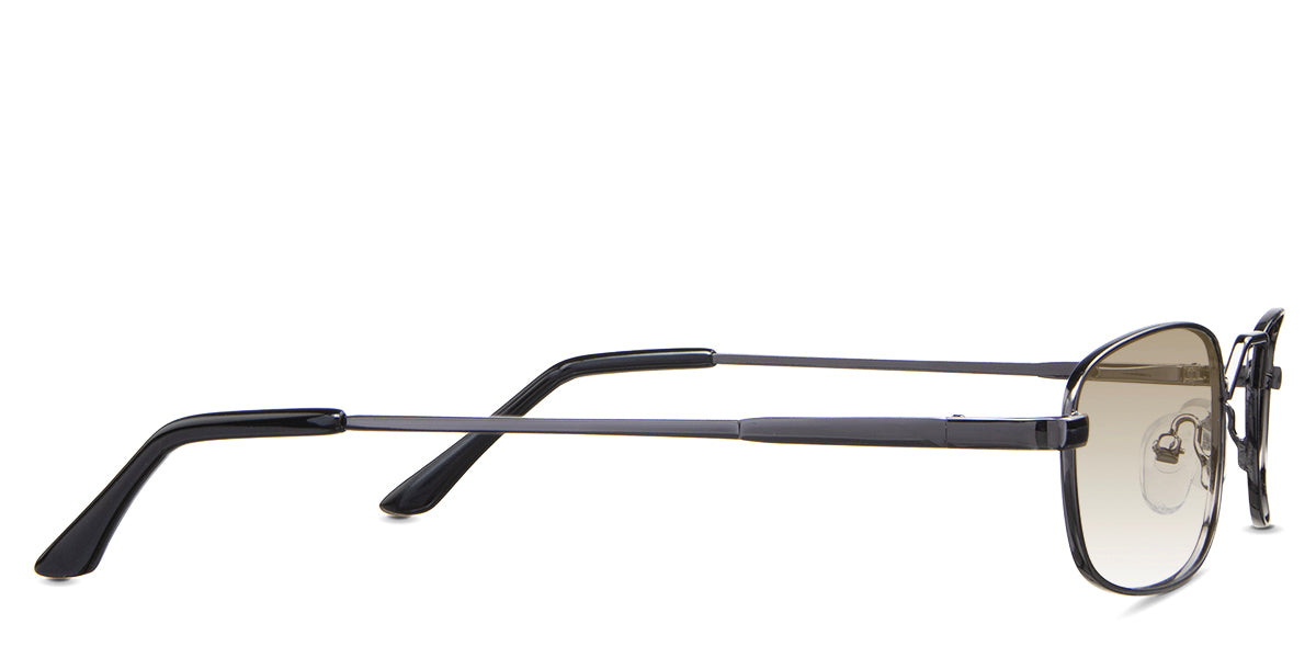 Zoey black tinted Gradient in the Gunmetal variant - is a full-rimmed metal frame with a high hat-shaped nose bridge and an acetate temple tip.