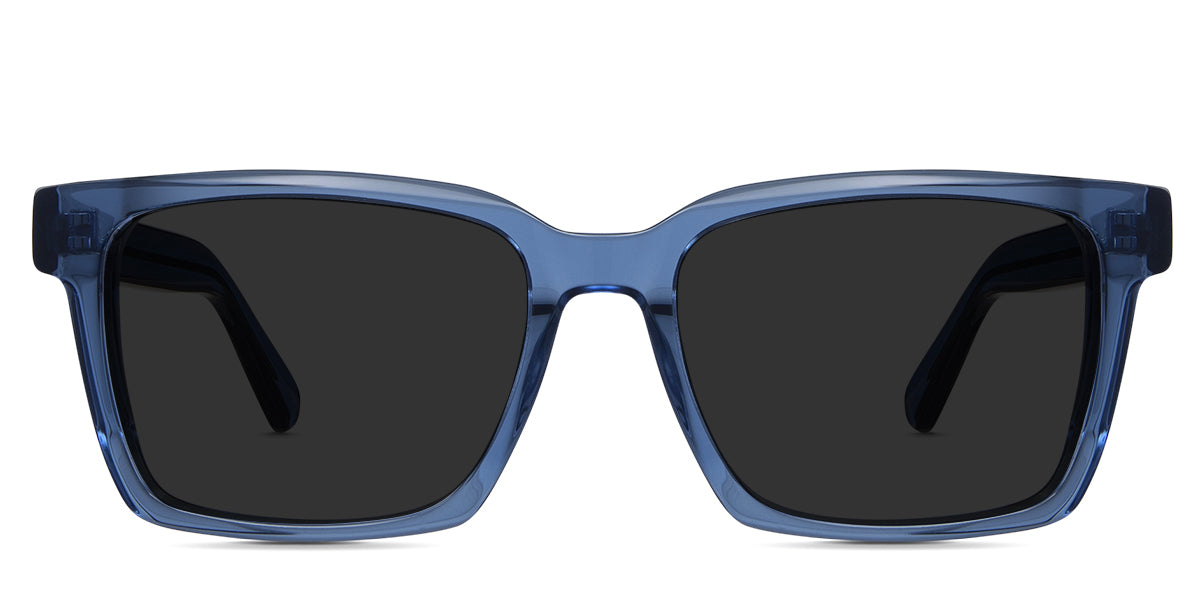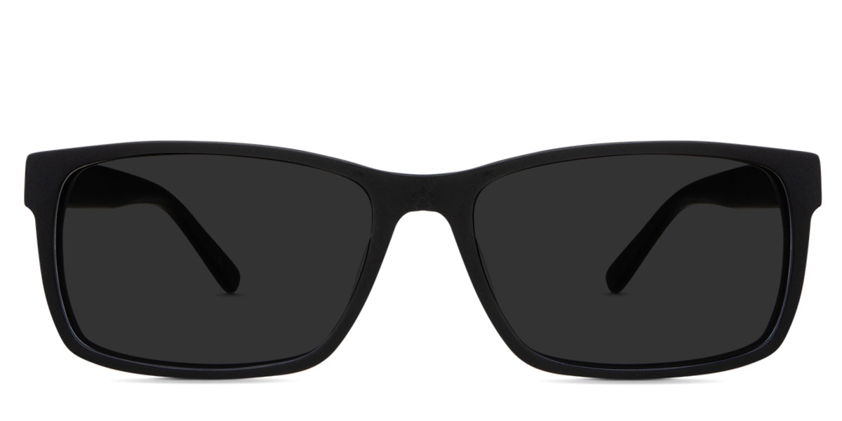 Vuri black tinted sunglasses in midnight variant - it's a wide square frame with slightly narrow nose bridge and broad temple