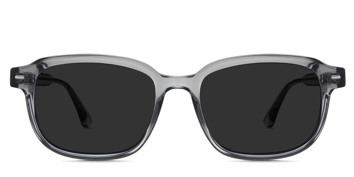 Hank black tinted Standard Solid sunglasses in Sposh variant it's an acetate frame in crystal grey color and have a keyhole-shaped nose bridge.