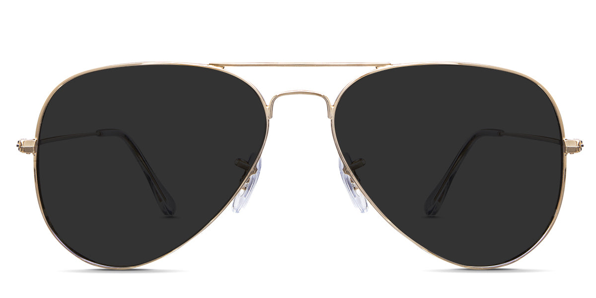 Xavier Black Sunglasses Solid in the Gold variant - it's a full-rimmed frame with adjustable nose pads.