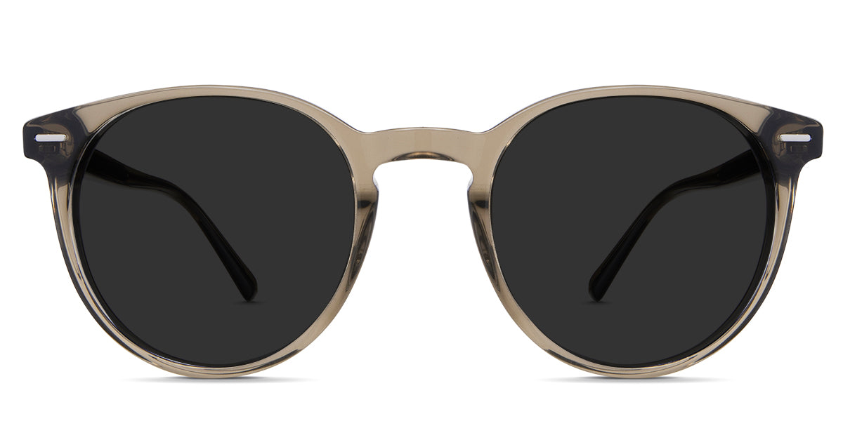 Ebon black tinted Standard Solid sunglasses in Glaucous variant - it's a clear acetate frame in grey color and have a built-in nose pads with 15mm nose bridge