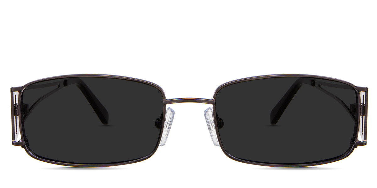 Kiza black tinted sunglasses in the zarafa variant - it's a rectangular tortoise frame with a keyhole nose bridge shape and flat top rims.