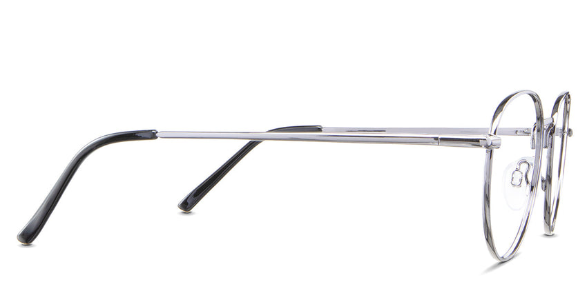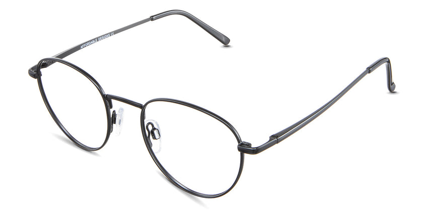 Allison eyeglasses in the sumi variant - have a slim temple arm.