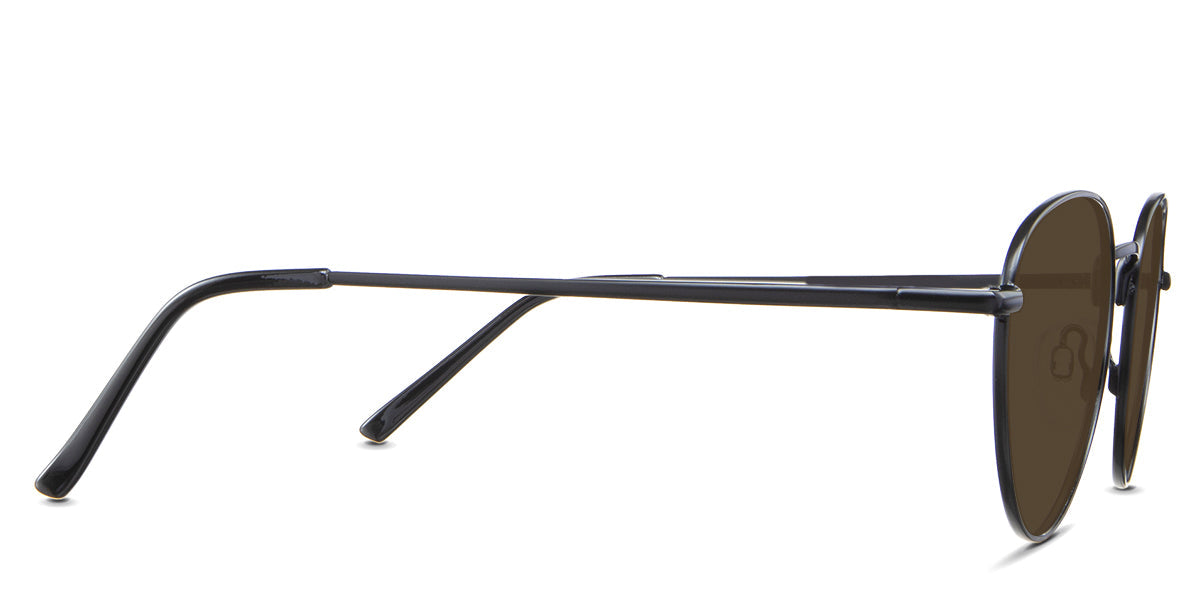 Allison Gray Polarized in the Sumi variant - is a round frame with adjustable nose pads and a slim temple arm.