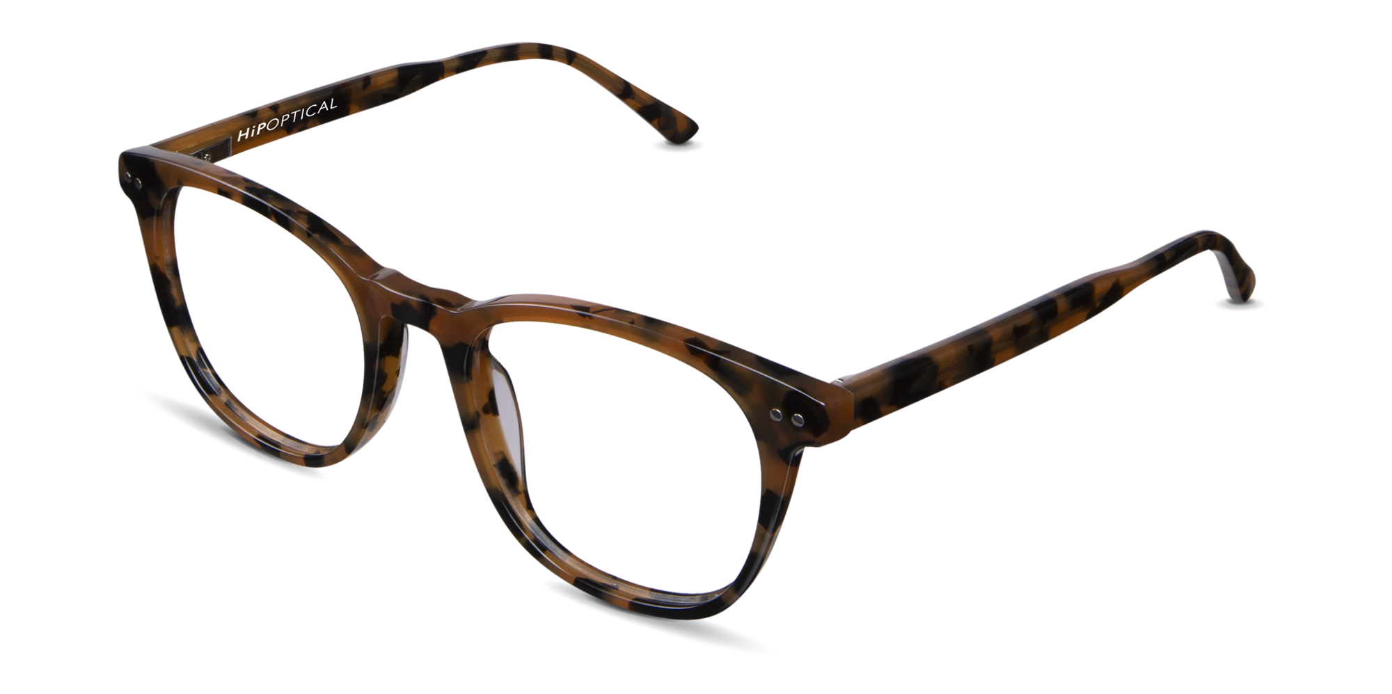 Batista frame in apple cider variant - it has thin arms written hip optical on the right arm made with acetate material