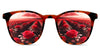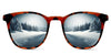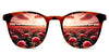 The image on the glasses is a mirror reflection.