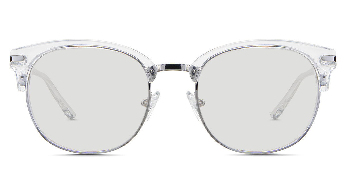 Make every glance a narrative of style with the Bayler frame. Blending round lenses with the iconic Clubmaster style, it creates a bold upper frame that speaks volumes against the subtle, rimless lower half. The gentle curves of its lenses soften the shift—ideal for the contemporary visionary who commands a room with quiet, understated elegance, letting their style do the talking.