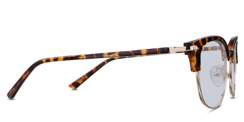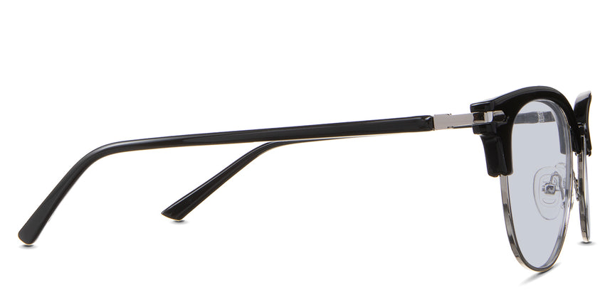 Make every glance a narrative of style with the Bayler frame. Blending round lenses with the iconic Clubmaster style, it creates a bold upper frame that speaks volumes against the subtle, rimless lower half. The gentle curves of its lenses soften the shift—ideal for the contemporary visionary who commands a room with quiet, understated elegance, letting their style do the talking.