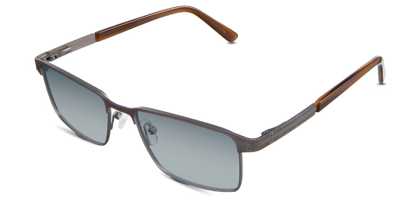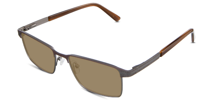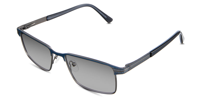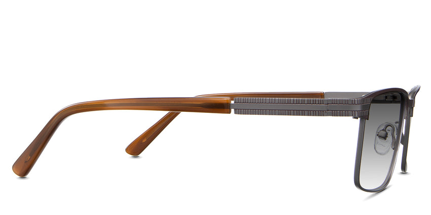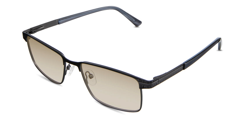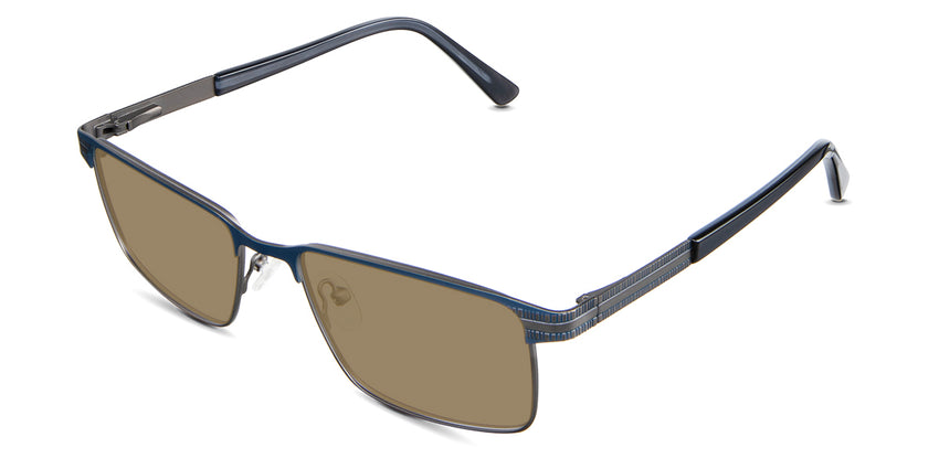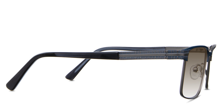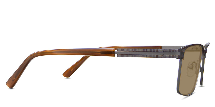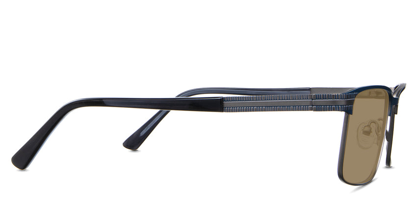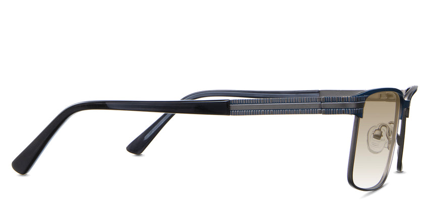 The Benge is a rectangular frame that radiates authority. Its rectangular silhouette and straight bridge speak of unwavering confidence, ensuring you're noticed in every setting. Yet, it's the understated linear ribbed texture on the temples that adds a tactile dimension to this powerhouse. Trace your fingers along, and you'll instantly feel the power of design.