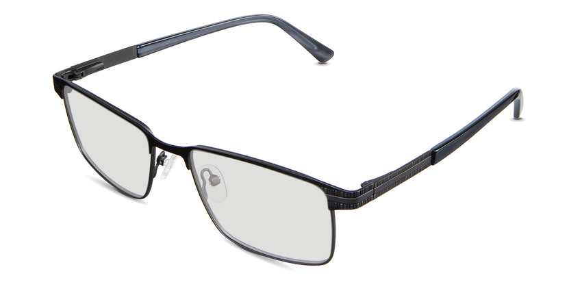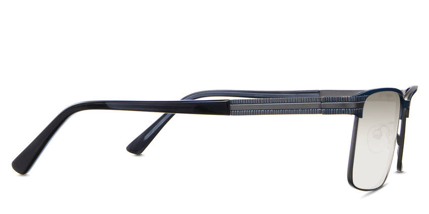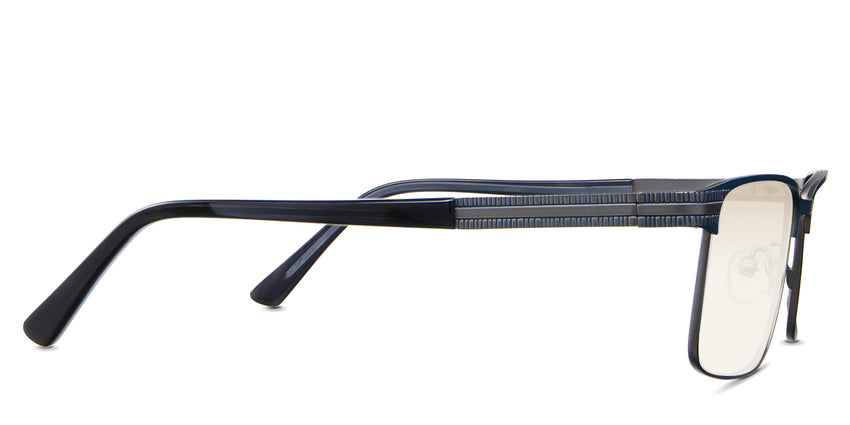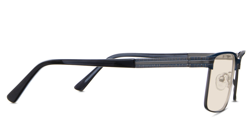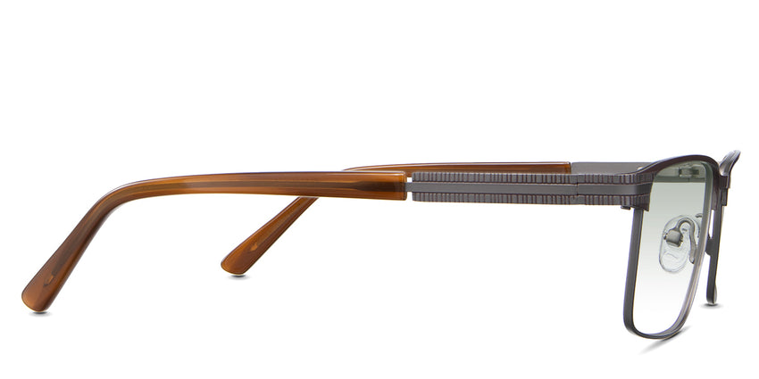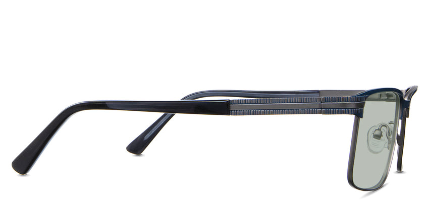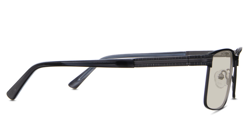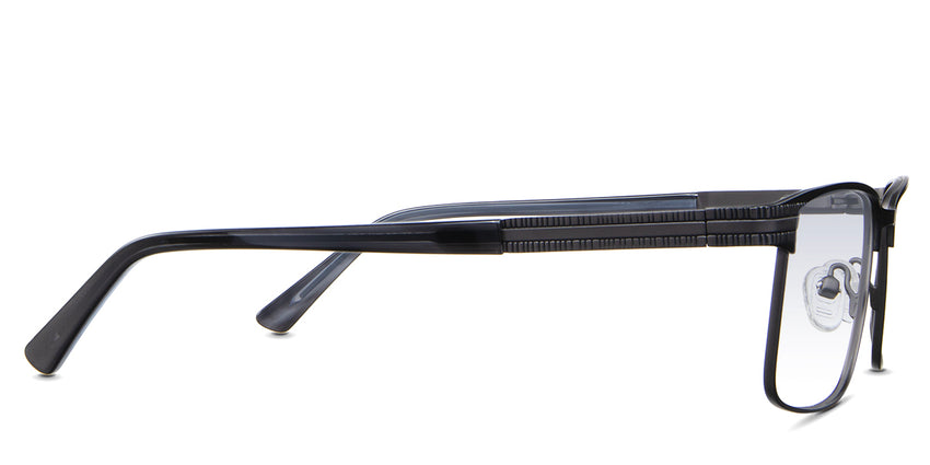 The Benge is a rectangular frame that radiates authority. Its rectangular silhouette and straight bridge speak of unwavering confidence, ensuring you're noticed in every setting. Yet, it's the understated linear ribbed texture on the temples that adds a tactile dimension to this powerhouse. Trace your fingers along, and you'll instantly feel the power of design.