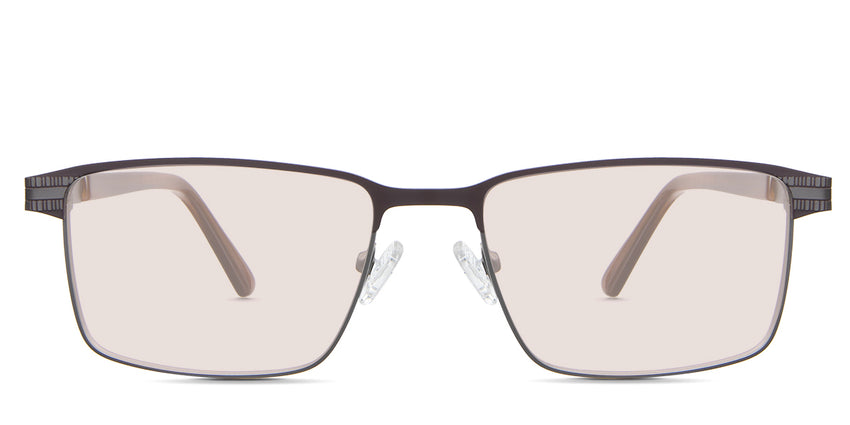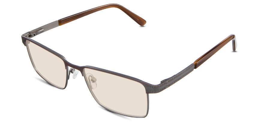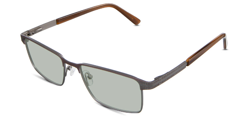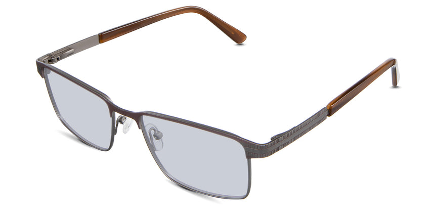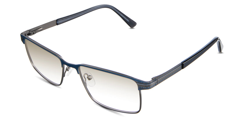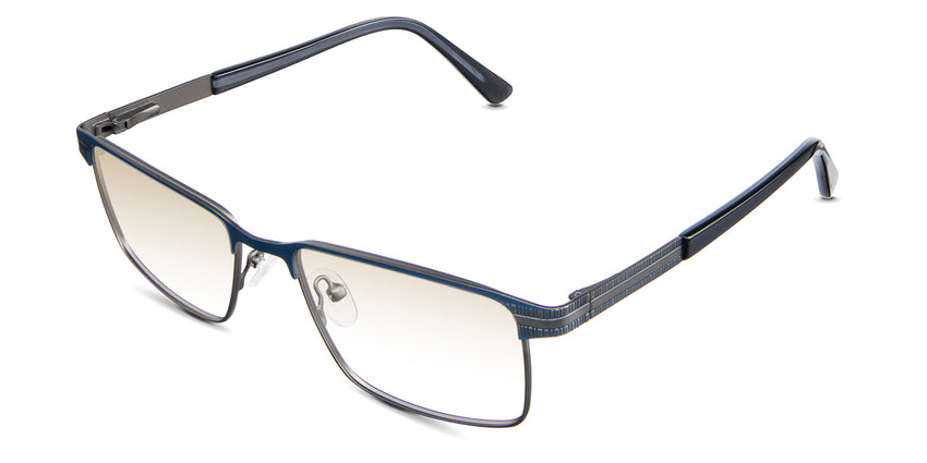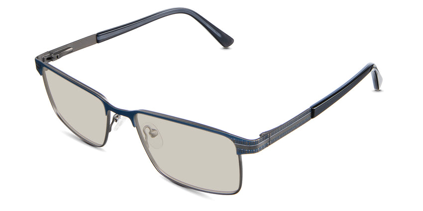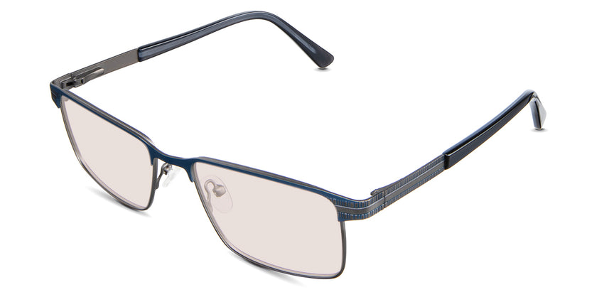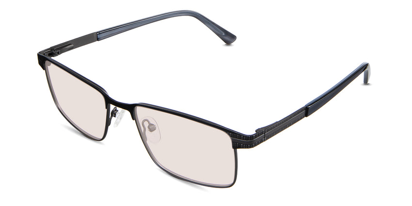 The Benge is a rectangular frame that radiates authority. Its rectangular silhouette and straight bridge speak of unwavering confidence, ensuring you're noticed in every setting. Yet, it's the understated linear ribbed texture on the temples that adds a tactile dimension to this powerhouse. Trace your fingers along, and you'll instantly feel the power of design.