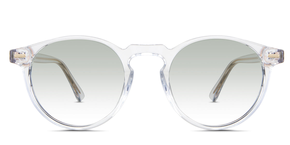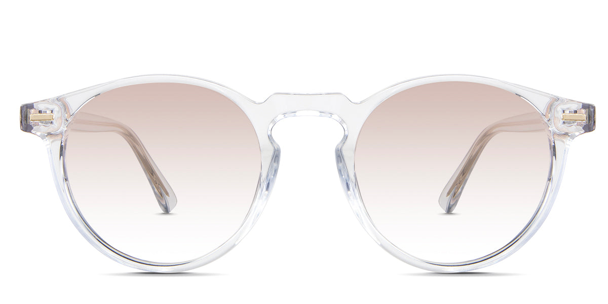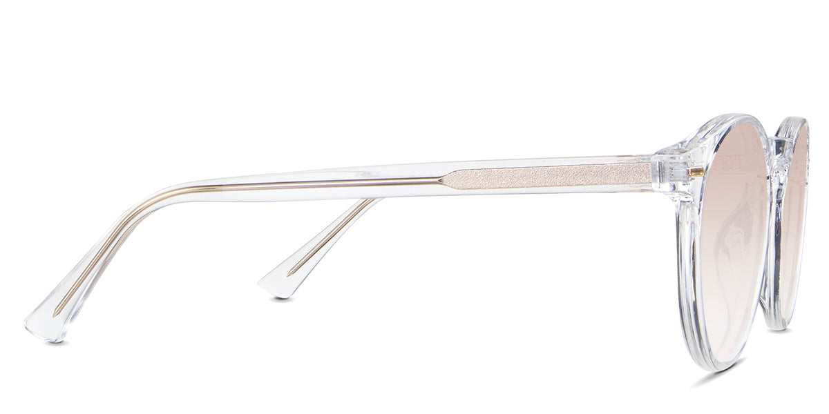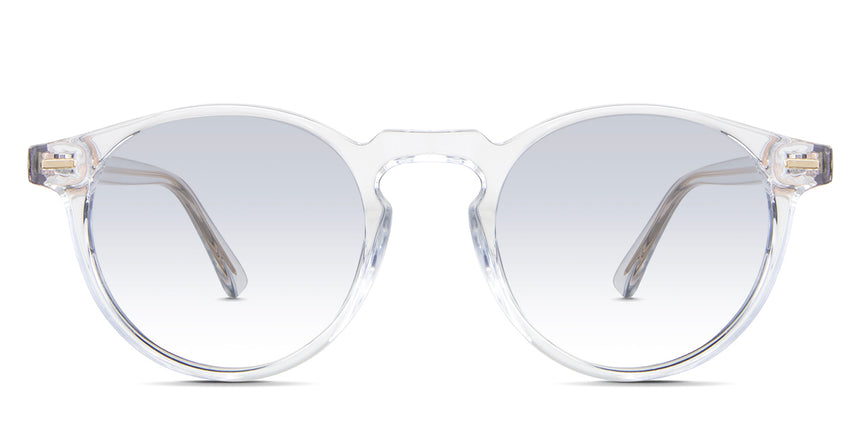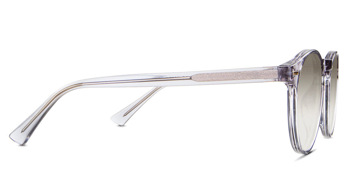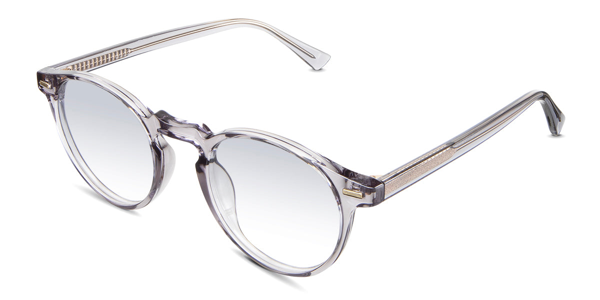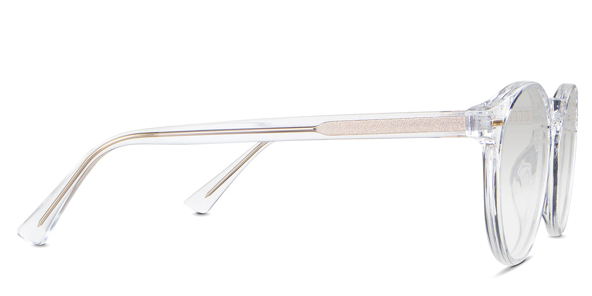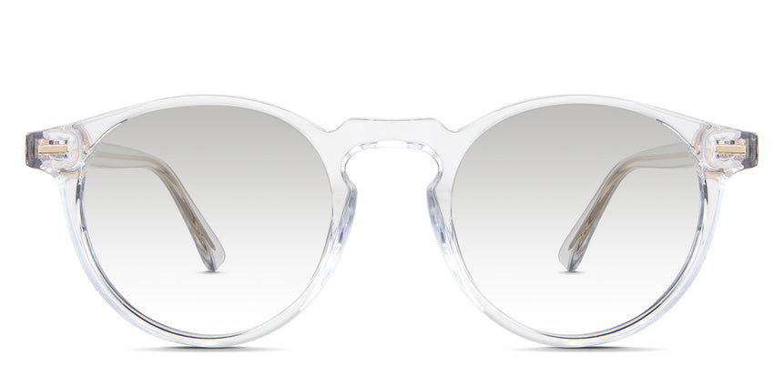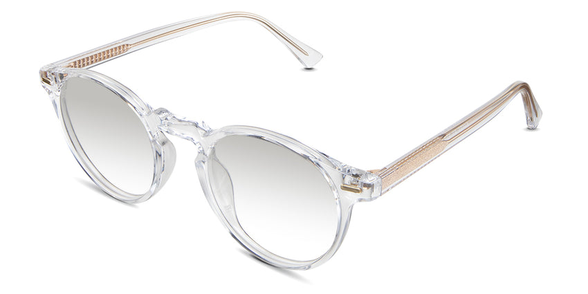 Carey black tinted Gradient in the Crystal variant - it's a transparent round-shaped frame with a medium-width nose bridge and a slim temple.