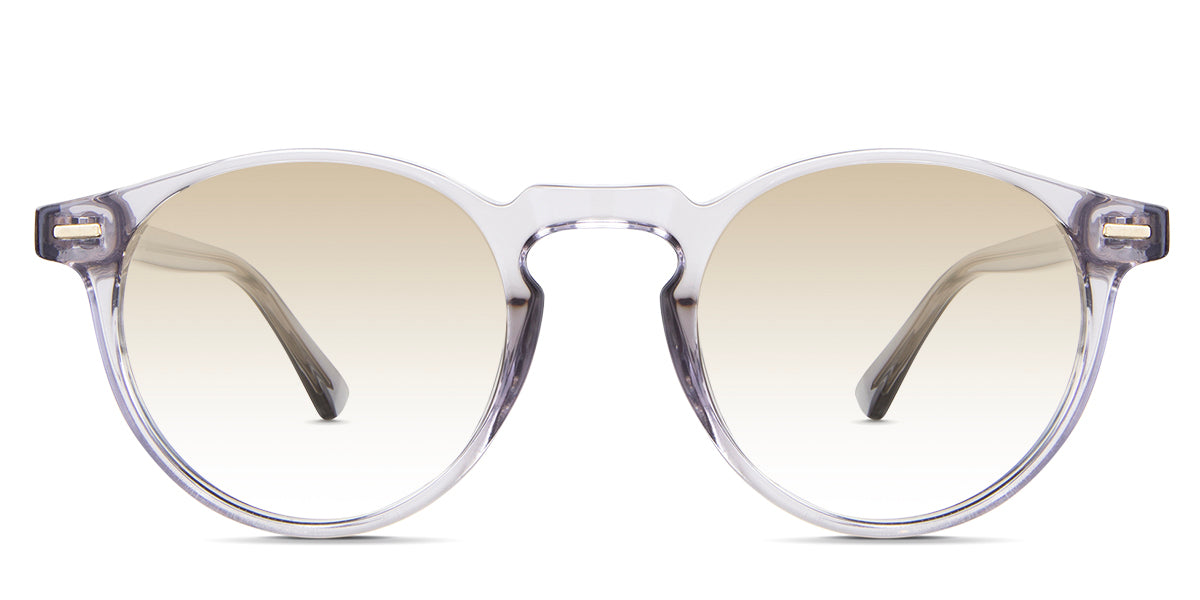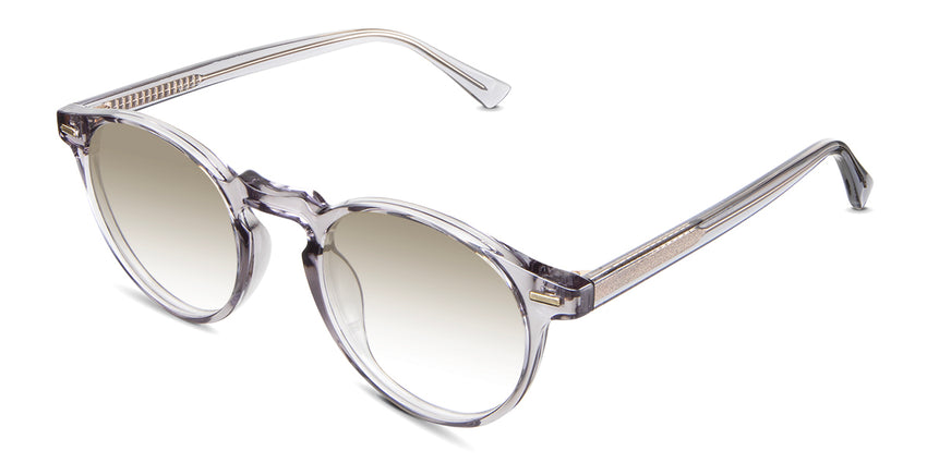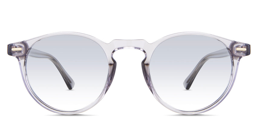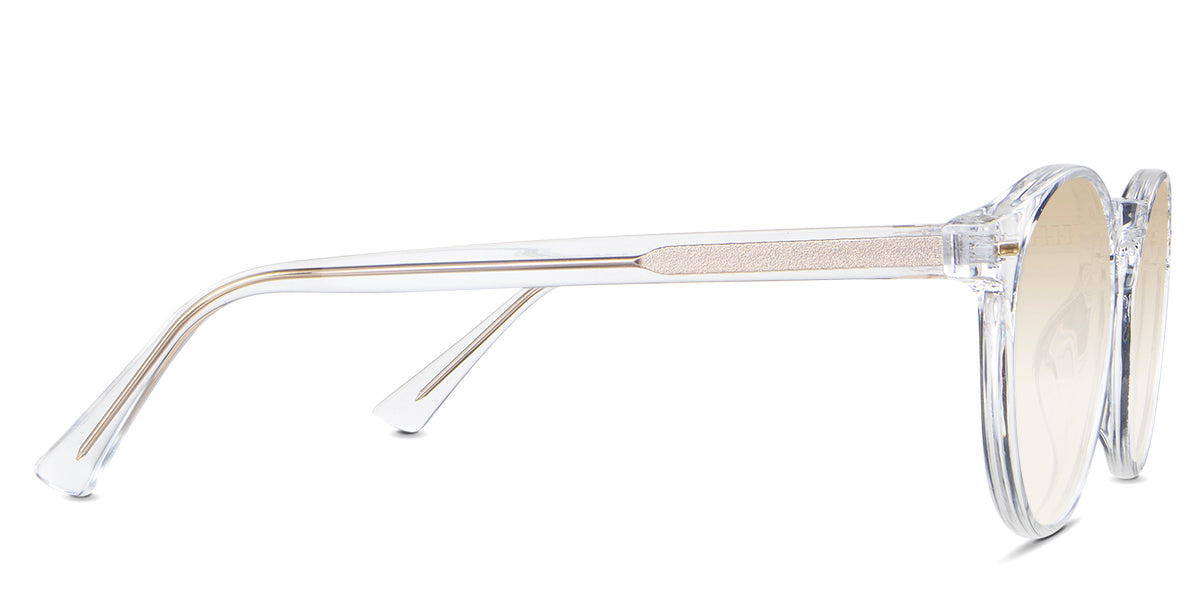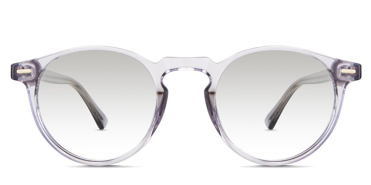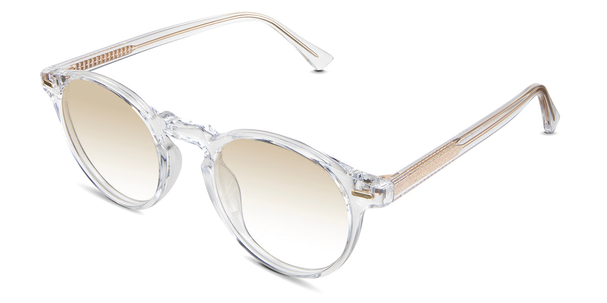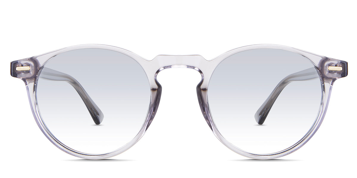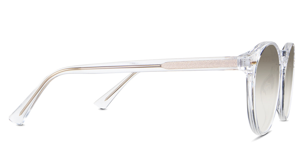 Carey black tinted Gradient in the Crystal variant - it's a transparent round-shaped frame with a medium-width nose bridge and a slim temple.