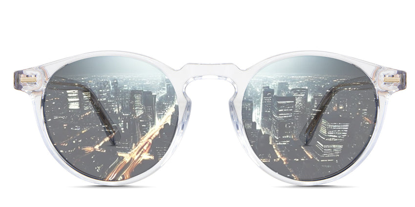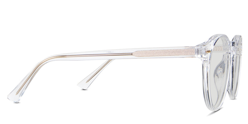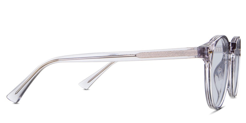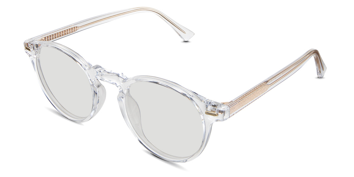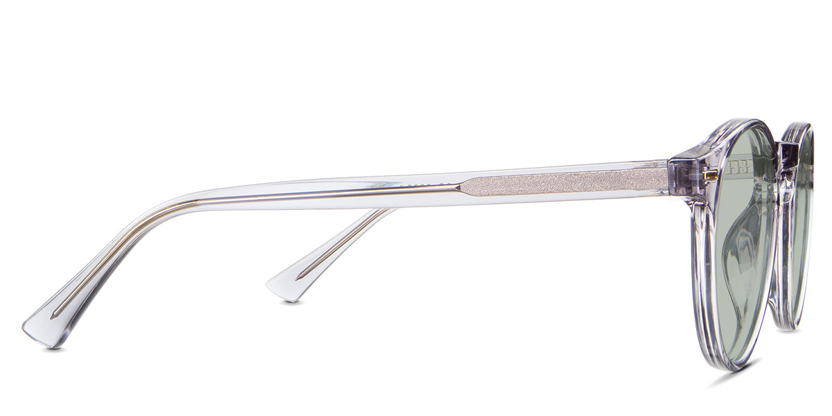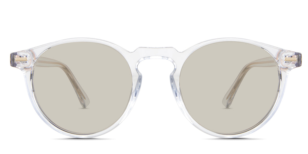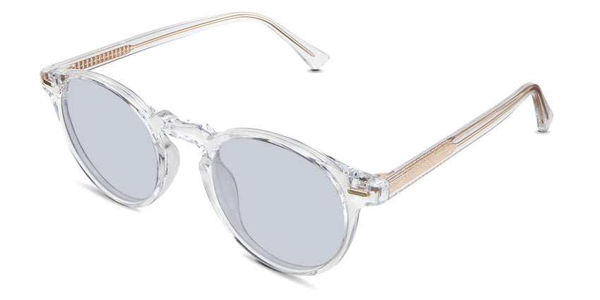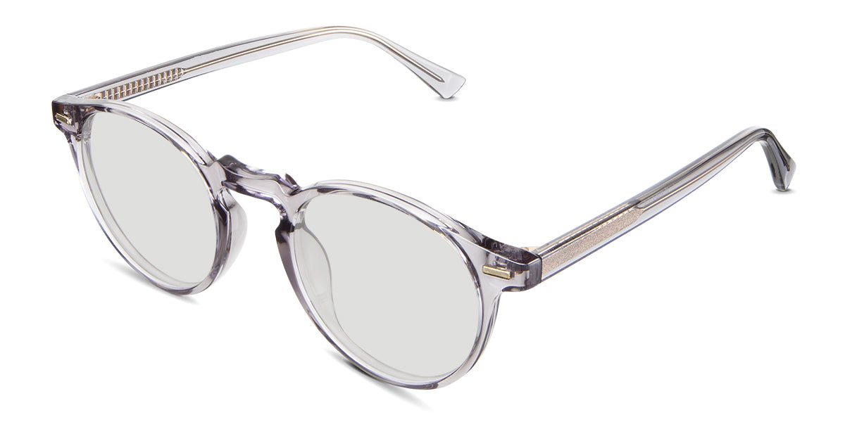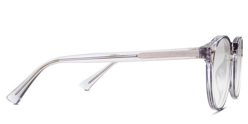 Carey black tinted Gradient in the Crystal variant - it's a transparent round-shaped frame with a medium-width nose bridge and a slim temple.