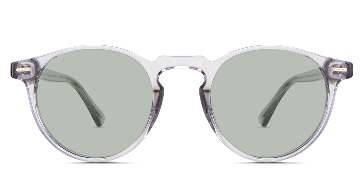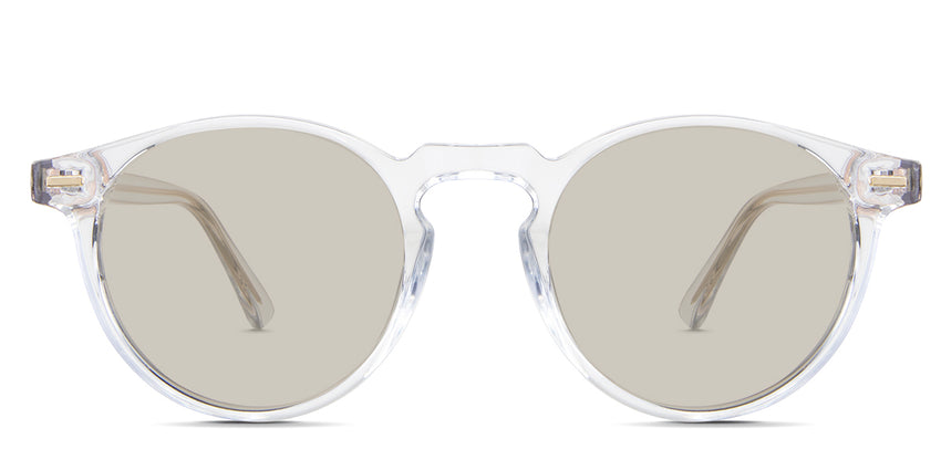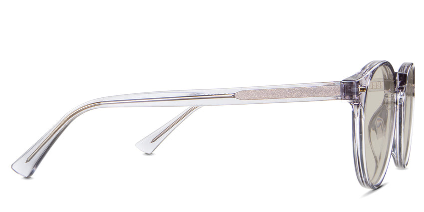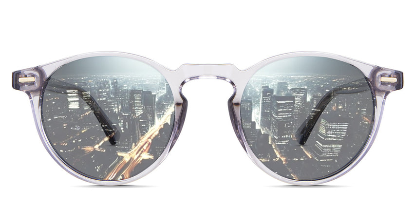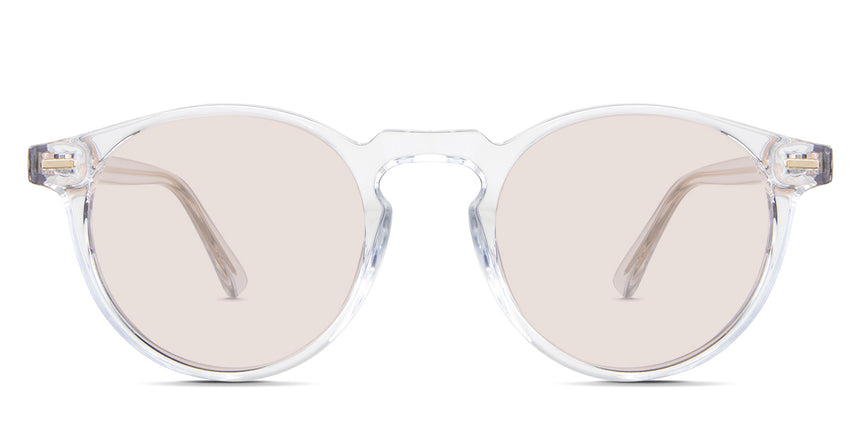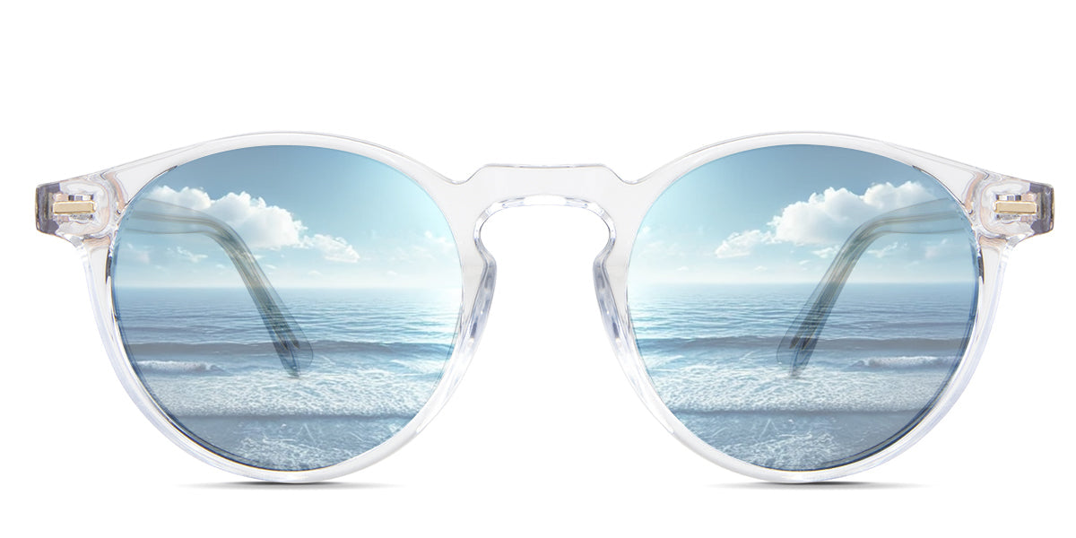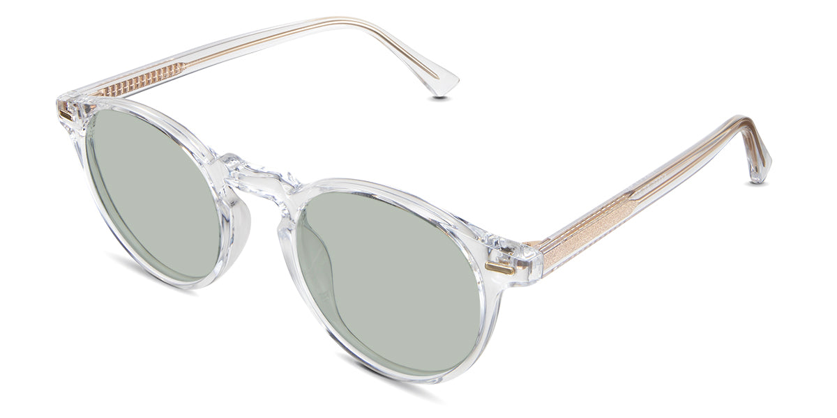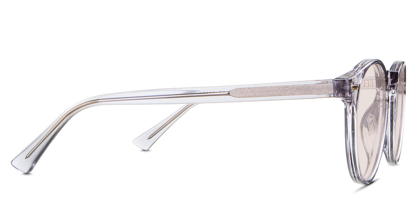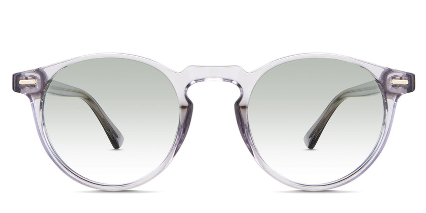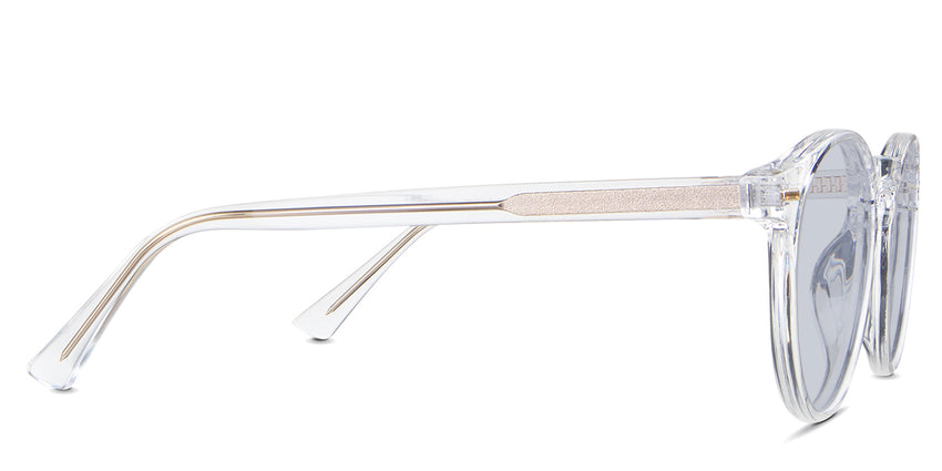 Carey black tinted Gradient in the Crystal variant - it's a transparent round-shaped frame with a medium-width nose bridge and a slim temple.