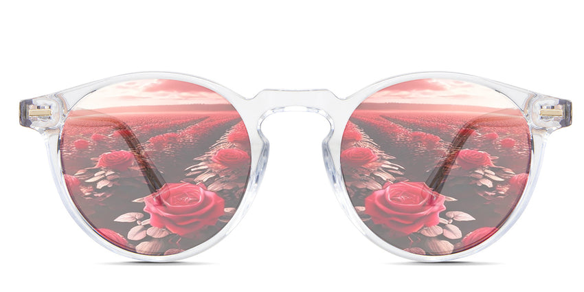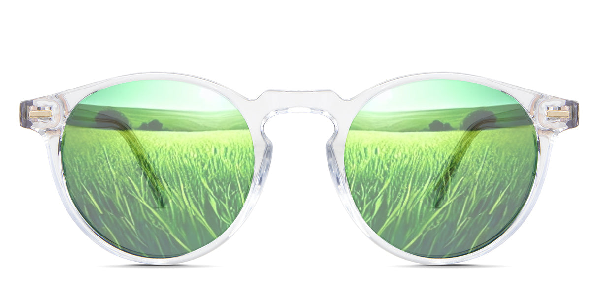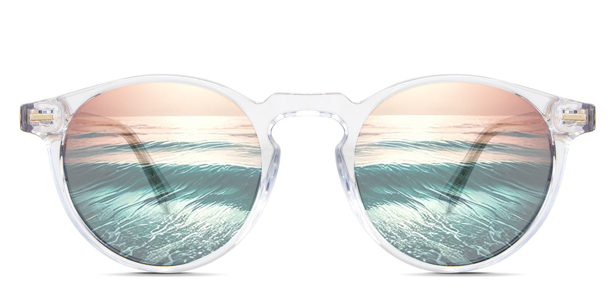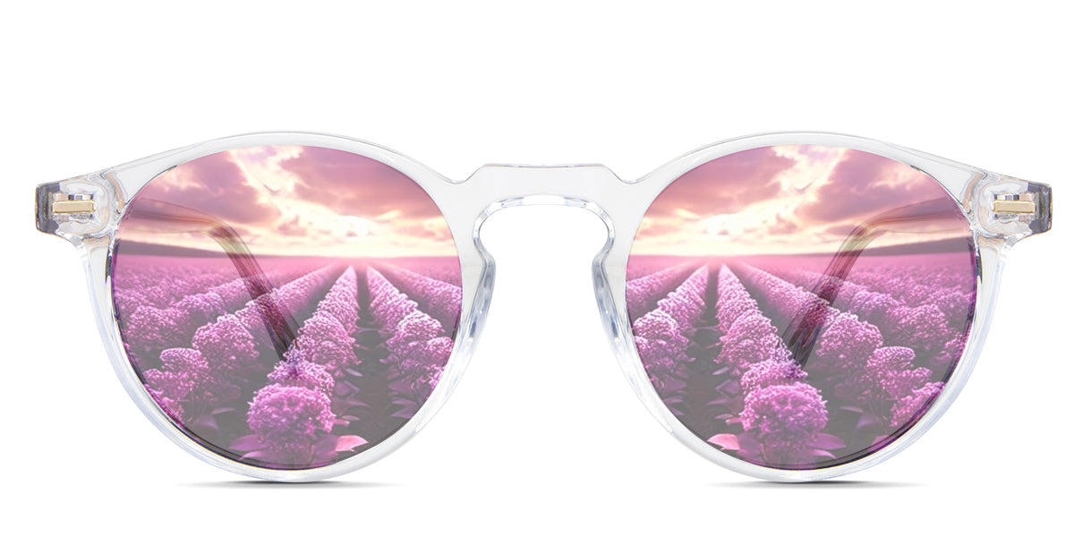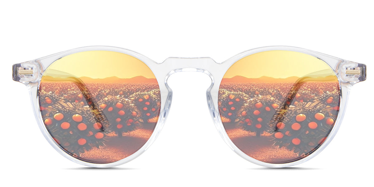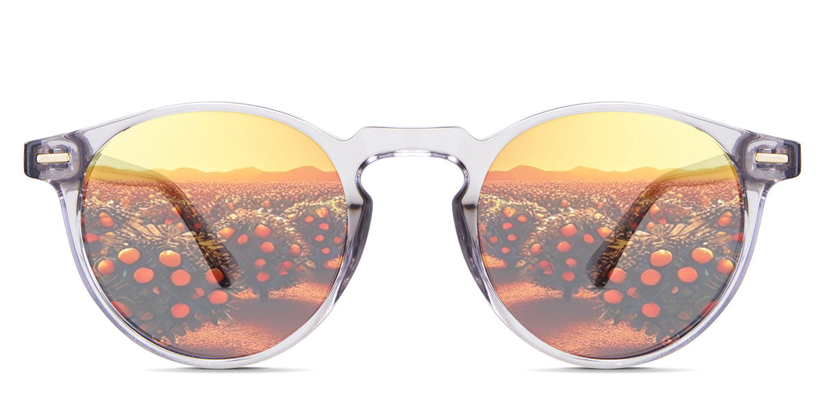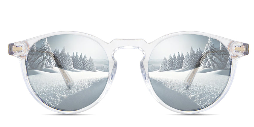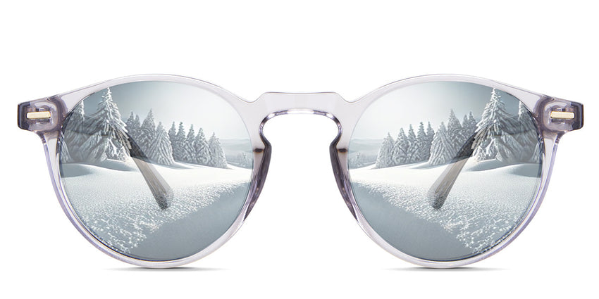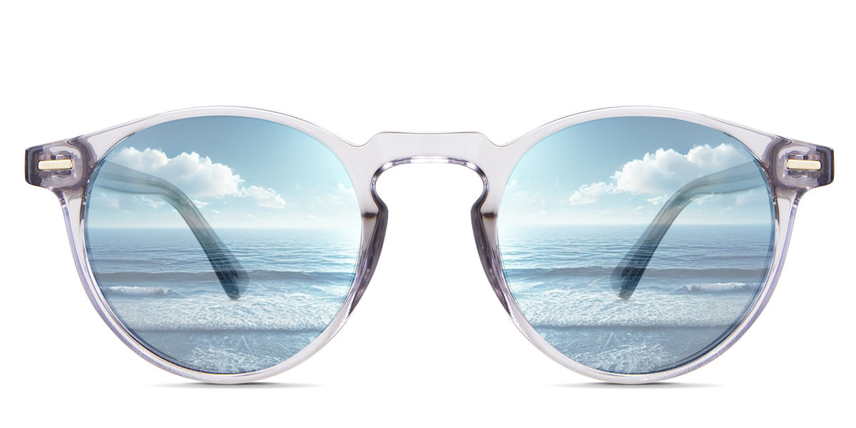 Carey black tinted Gradient in the Crystal variant - it's a transparent round-shaped frame with a medium-width nose bridge and a slim temple.