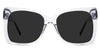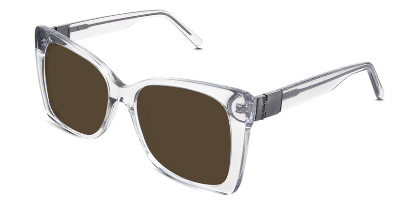 Ella presents a daring, oversized silhouette that commands attention, boldly challenging the ordinary. Not suited for the faint of heart, these square-cut frames are all about angles and attitude, featuring sharp- edged corners and a thick, pronounced build. The saddle bridge complements the design, reinforcing the angular aesthetic and solidifying Ella as an unmistakable statement of style-savviness.
