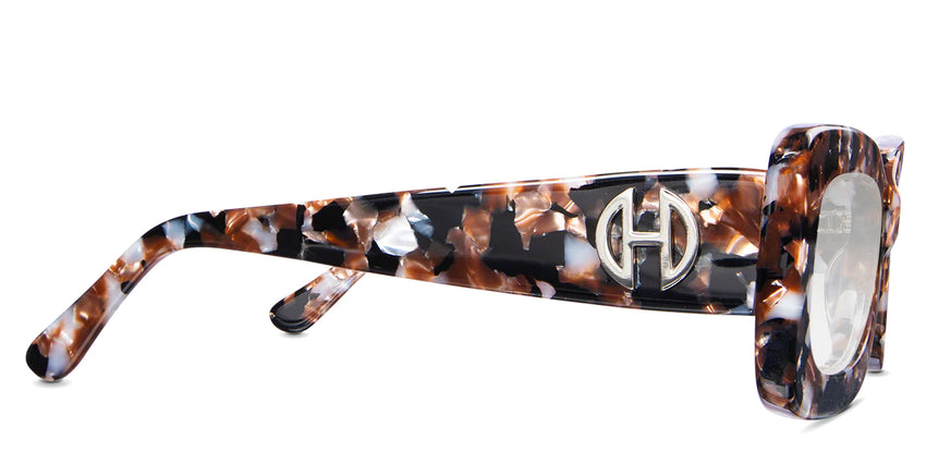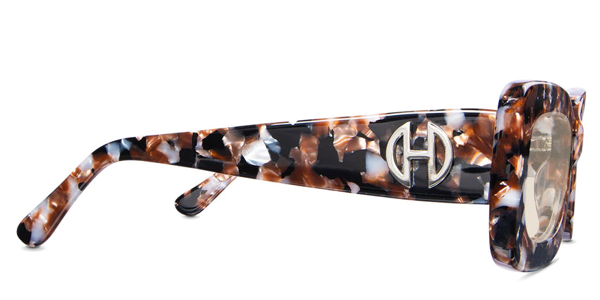 Erid black tinted Gradient sunglasses in praline variant with broad arms and Hip optical logo