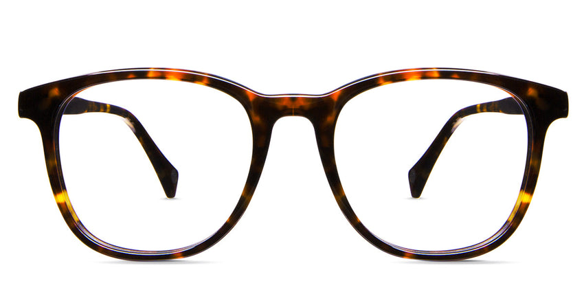 Grimm Jr prescription eyeglasses in maple shadows variant - it's a tortoise frame with brown, black and golden brown color.