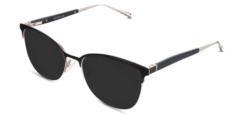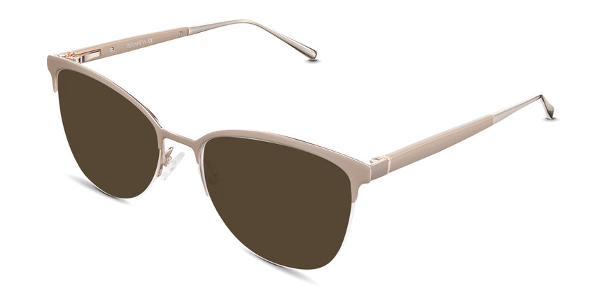 Poised, powerful, and profoundly feminine, the Jocelyn frame makes sophistication look easy. These semi-rimless glasses flaunt a delicate, gently arched top bar that transitions smoothly into a sleek saddle bridge. This elegant union gives way to the rounded lenses, the bottom half of which remains unframed for a modern twist, keeping things effortlessly chic and oh-so-light.