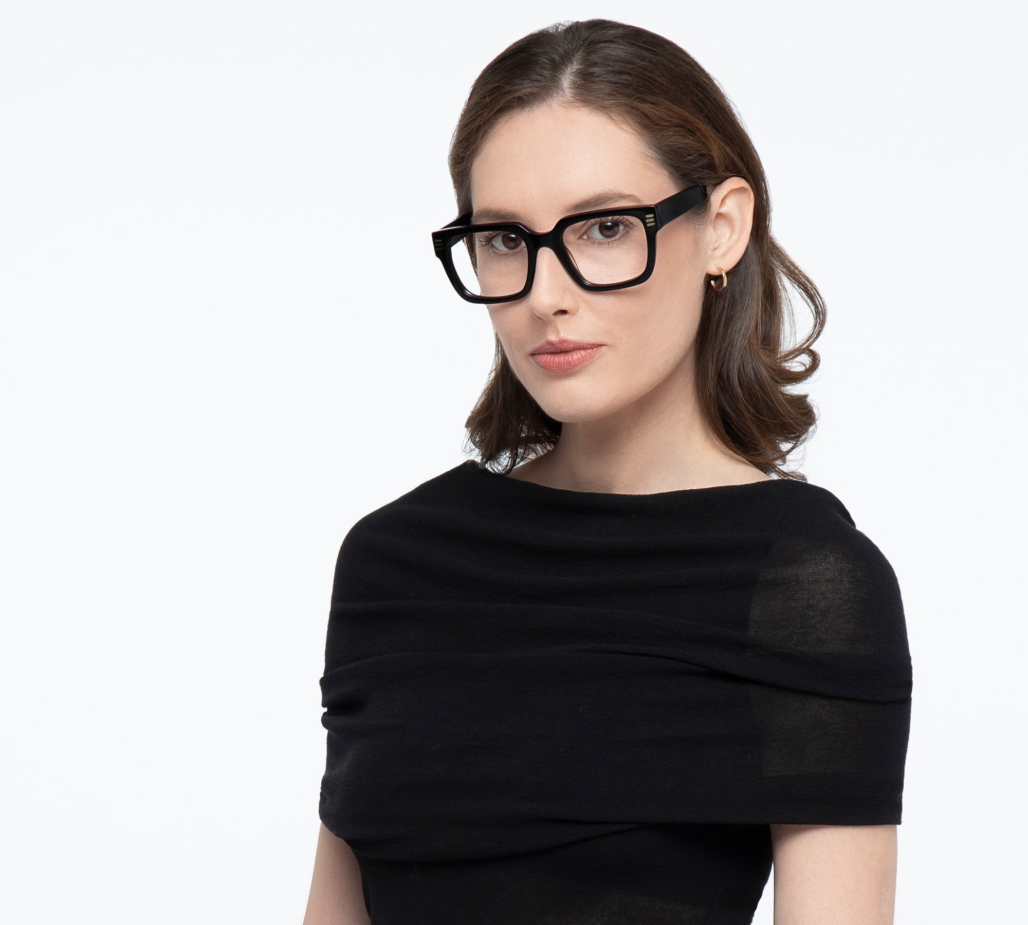 Prepare for a new look that gets looks. With her thick-framed lenses, square shape, and wide-set legs, Kendra brings flair and function to any outfit. The triple-studded edges shine with glamor that’s subtle but eye-catching.