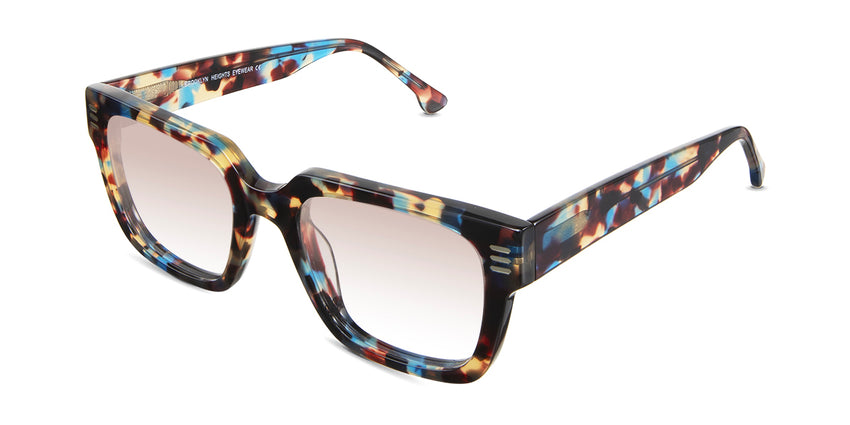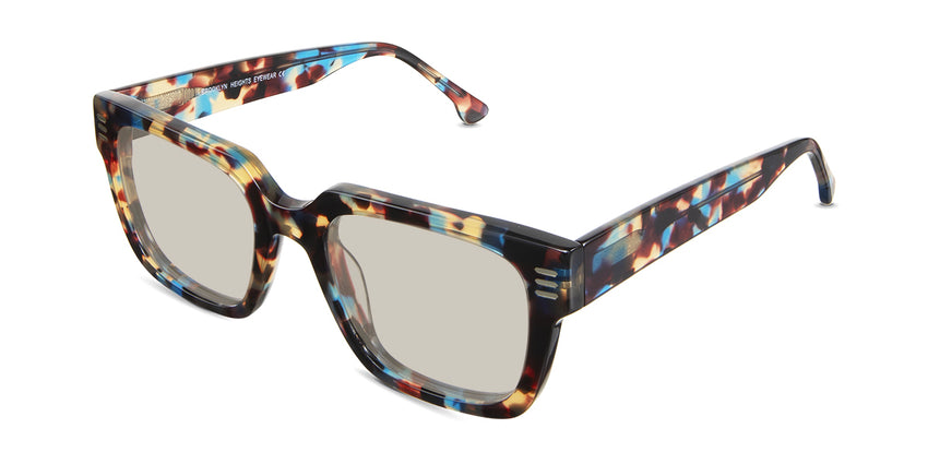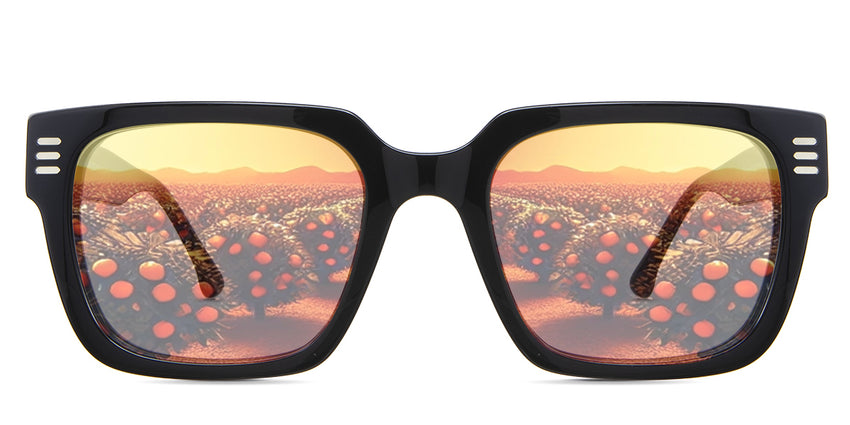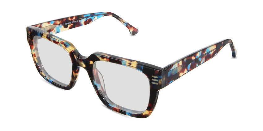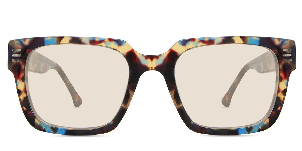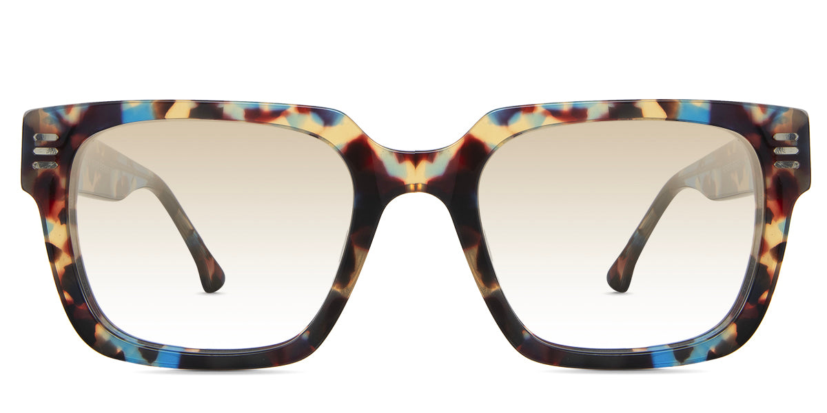 Prepare for a new look that gets looks. With her thick-framed lenses, square shape, and wide-set legs, Kendra brings flair and function to any outfit. The triple-studded edges shine with glamor that’s subtle but eye-catching.