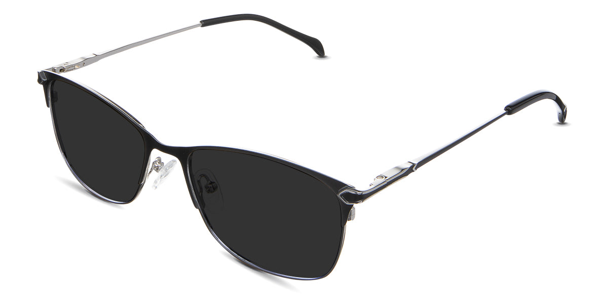 Soft curves meet gorgeous metallic details in the Kira glasses frame. With its sleek cat-eye silhouette and polished stainless steel finish, it brings feminine flair, glamour and luxury to your look. An intricately designed yet lightweight frame featuring subtle engravings and textured acetate temple tips for optimal comfort. Kira frames are a glamorous accent piece for the stylish, classy woman. Display your eyes in these visually stunning frames that perfectly complement gowns, blouses, dresses and feminine professional attire.