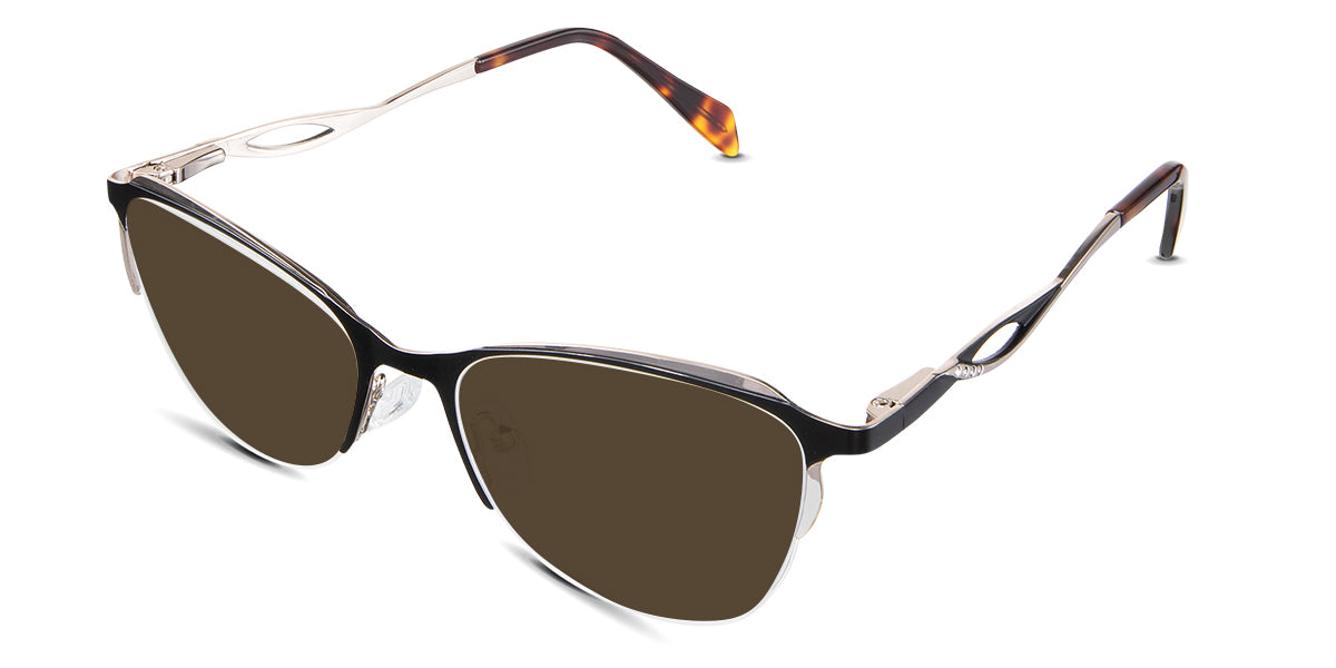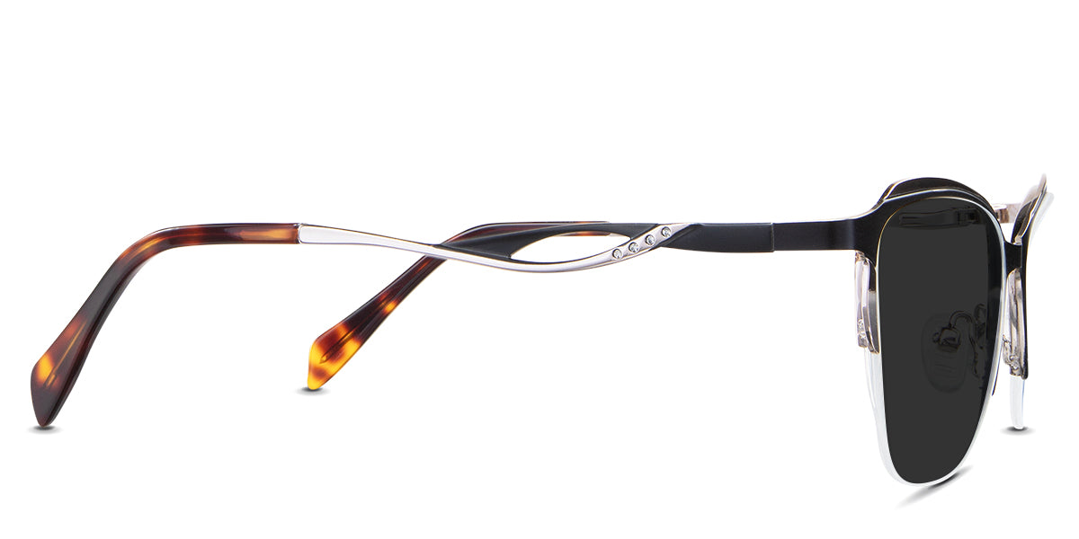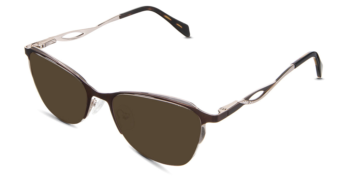 Lux holds a secret of classic charm in her gaze, gently flirting with the cat-eye silhouette to give just a hint of uplift to your look. The slightly oversized lenses become your window to the world, nestled within a frame where curves meet sleek metal highlights, creating a dance of light and shadow at your temples. It's the kind of accessory that murmurs confidence, never needing to raise its voice.