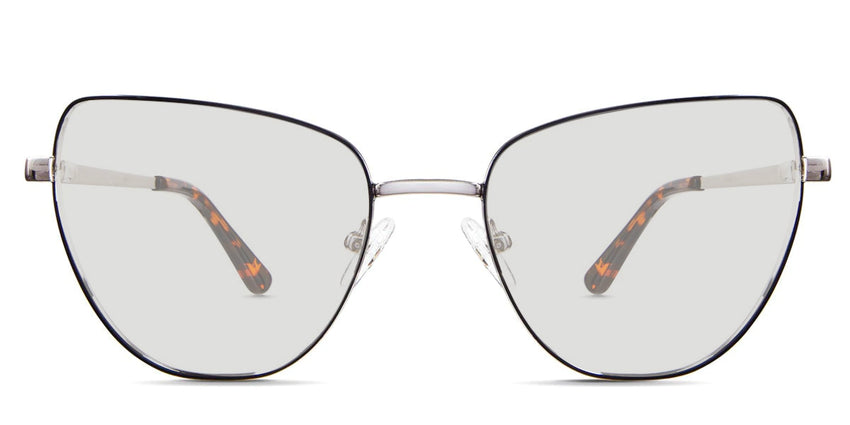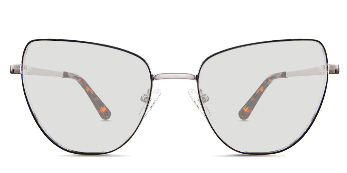 Maguire frame in demure variant in metal colour - cat eye frame with thin temple arms covered with black and clear acetate temple cover Metal