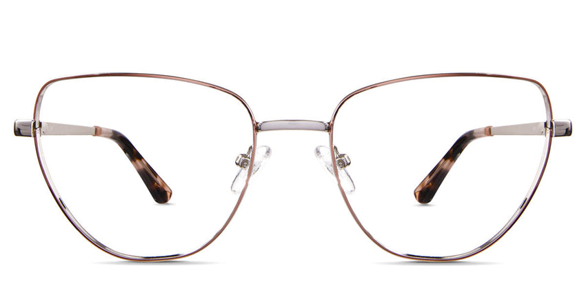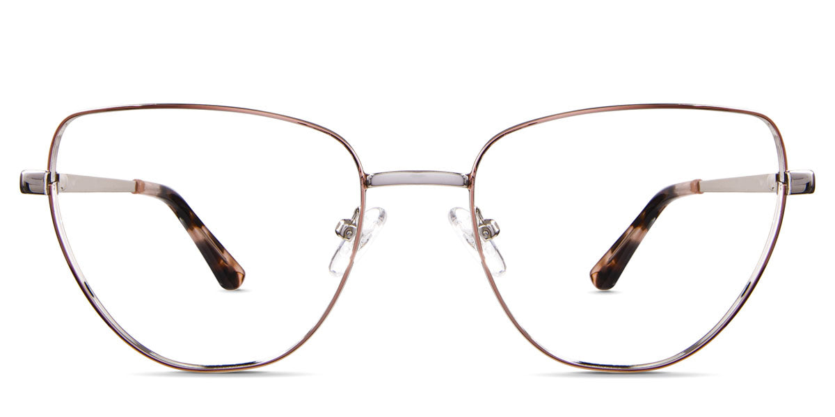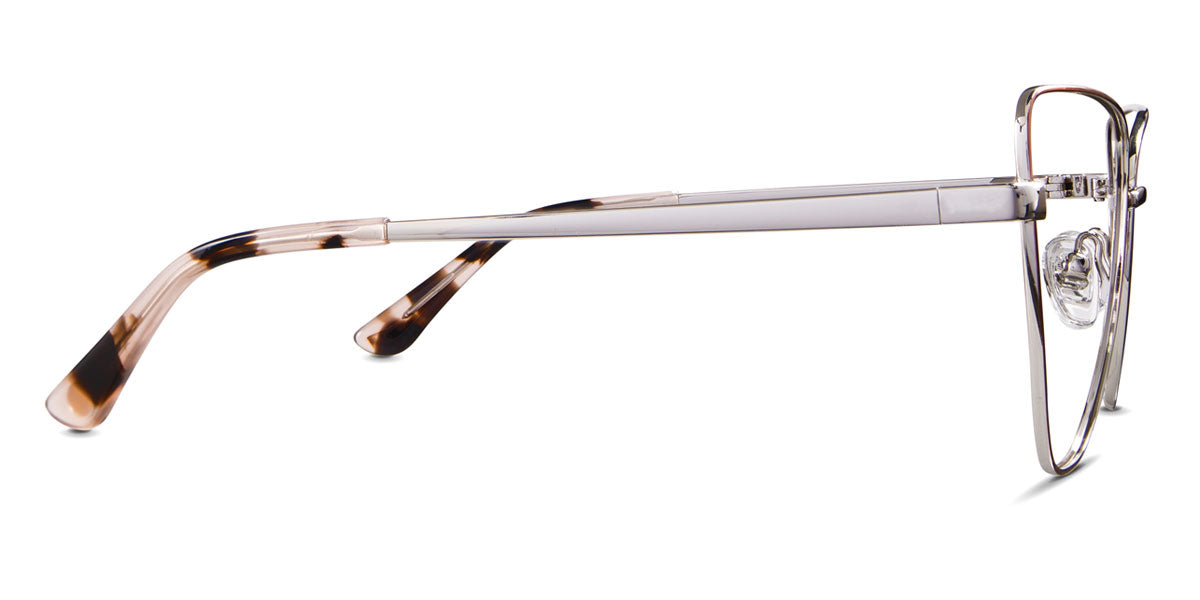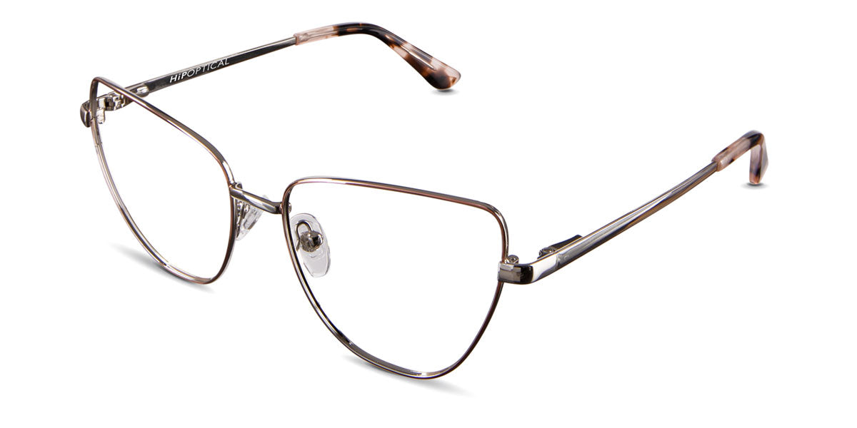 Maguire glasses in demure variant in metal colour - cat eye frame has adjustable nose clear pads and low nose bridge
