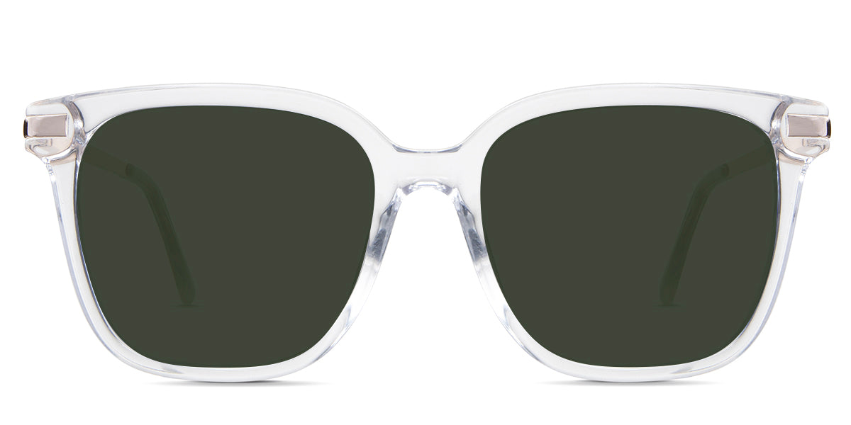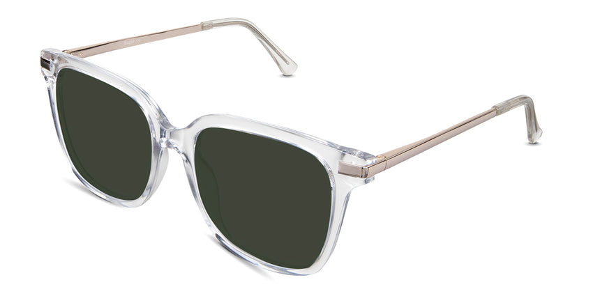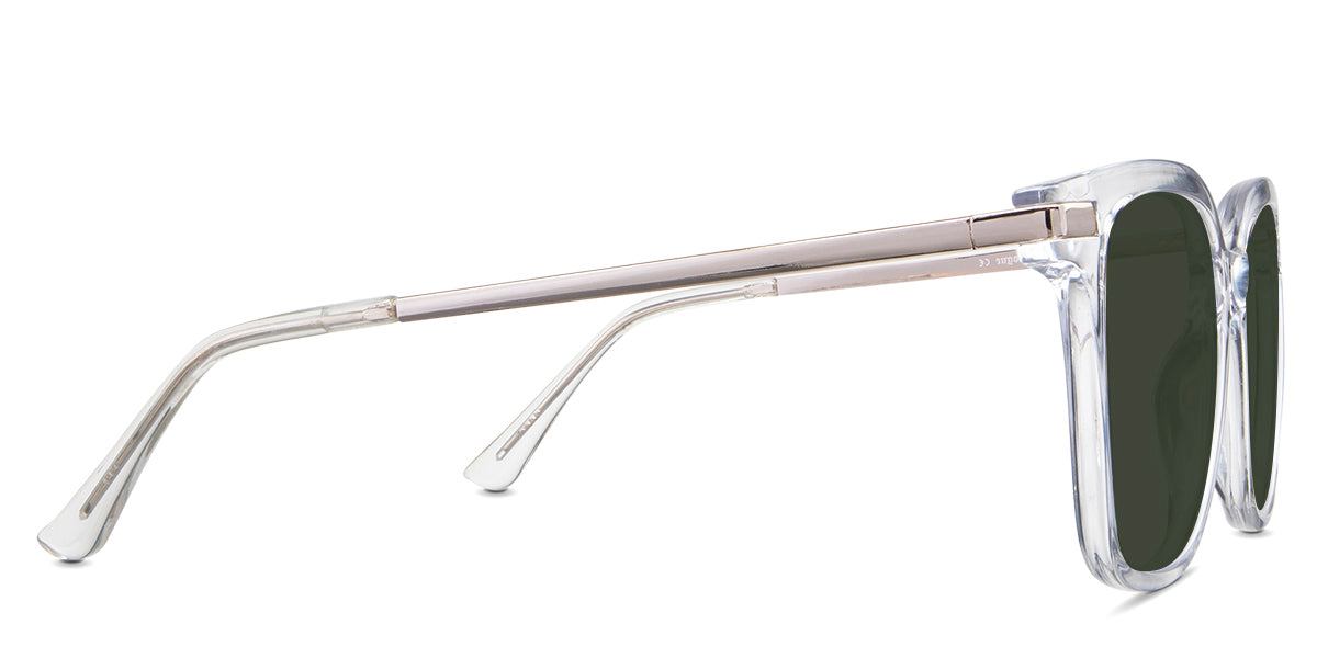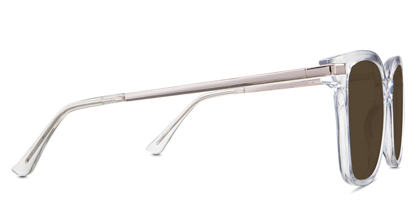 Mick  gray Polarized in the Goshenite variant - it's a square frame with a narrow-width nose bridge and a metal temple arm.