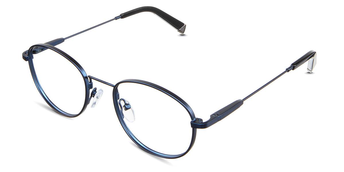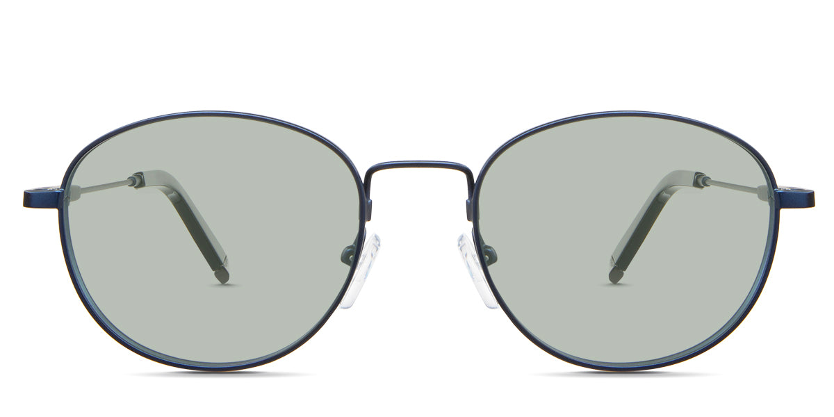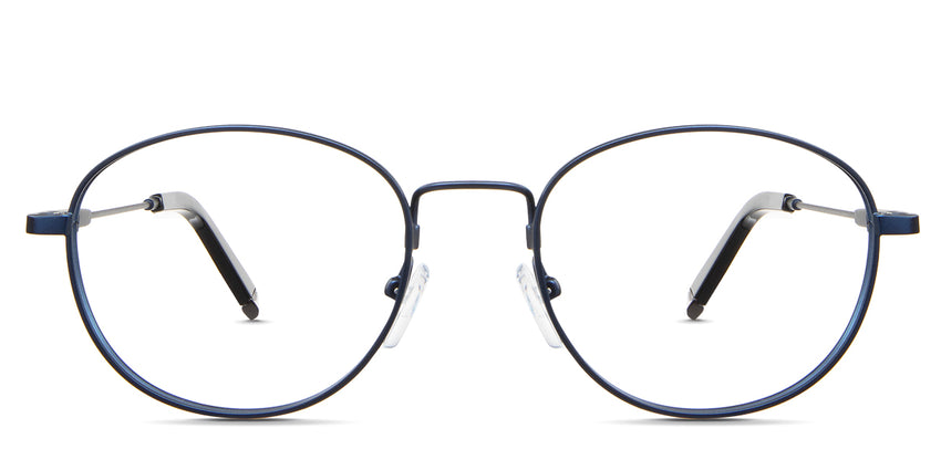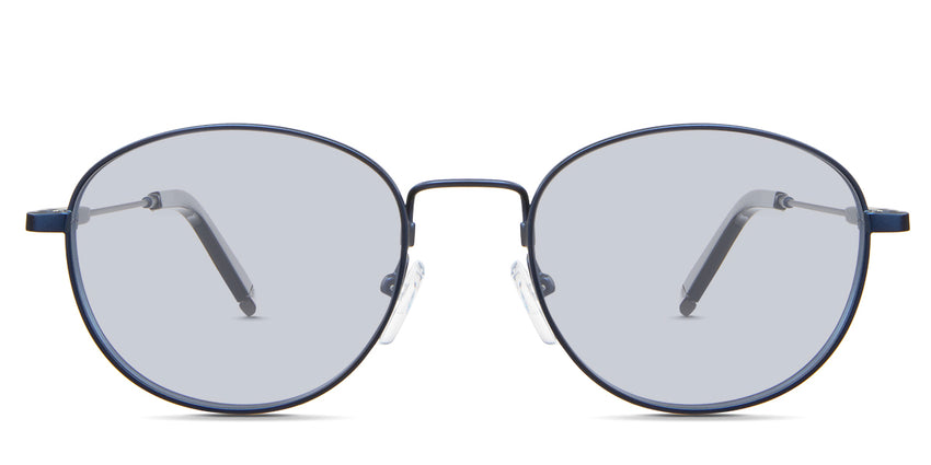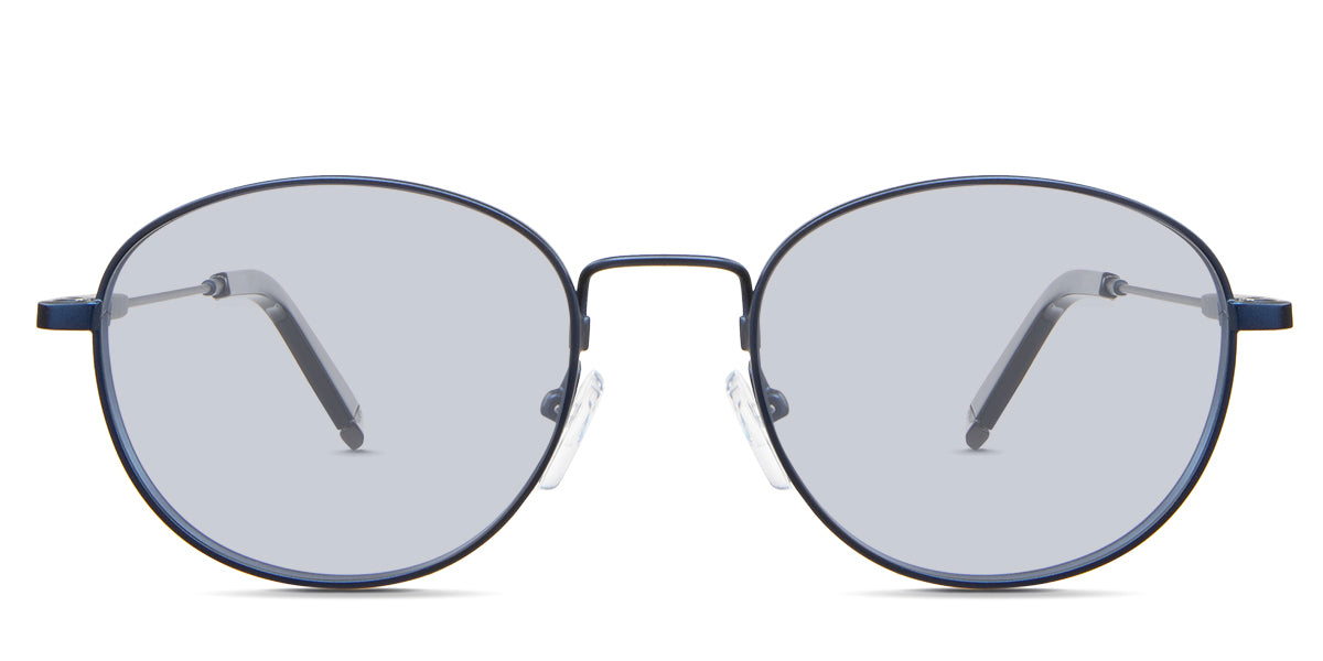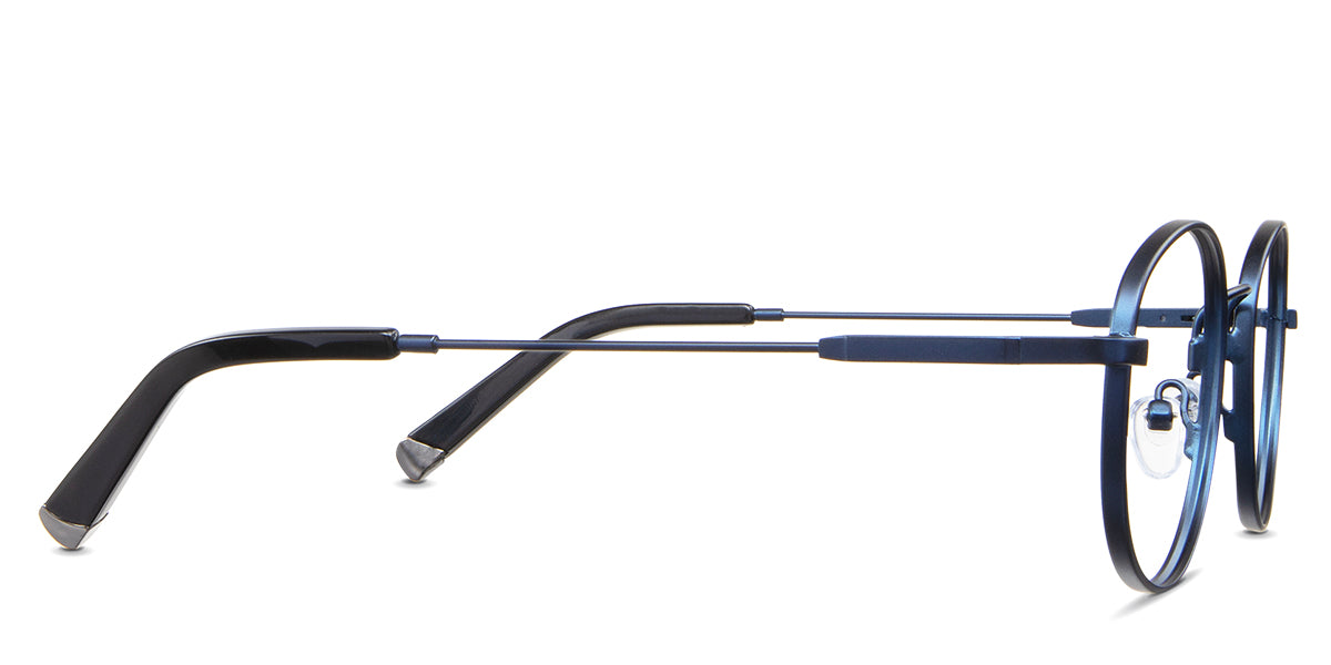 Noa eyeglasses in the admiral variant - is a round metal frame in navy color.