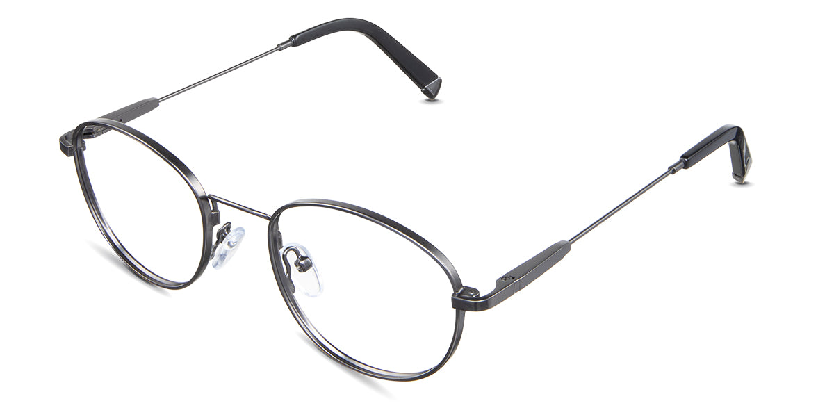 Noa eyeglasses in the gun variant - it's a combination of round, oval-shaped frames.
