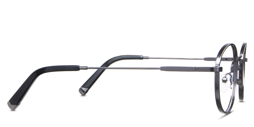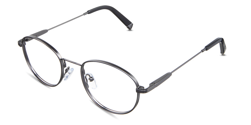 Noa eyeglasses in the gun variant - have large symmetric temple tips.