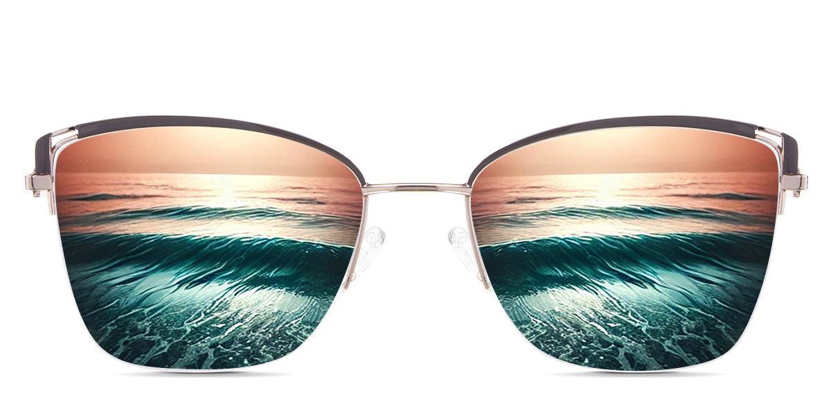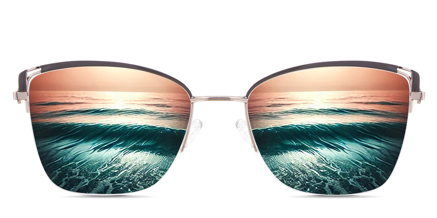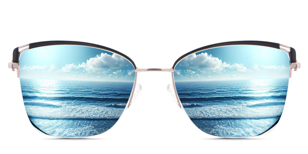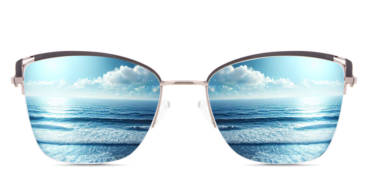 Designed for those who seek a delicate yet distinctive aesthetic, Phoebe checks all the boxes. Its square corners are gently rounded, softening the frame, while an elegant lift at the temples adds a touch of femininity and understated chic. A metal brow bar echoes the shape of the lenses, all complemented by a rimless lower half for a harmonious finish.