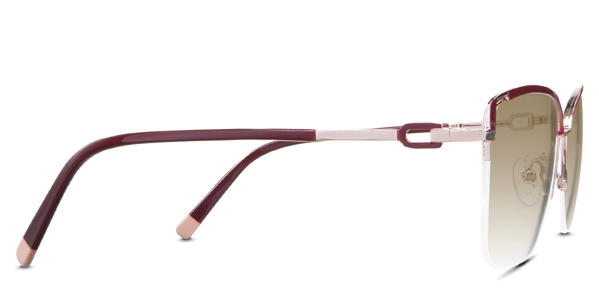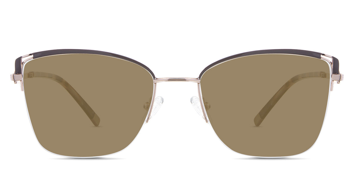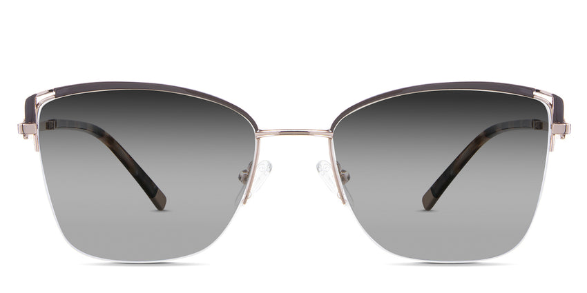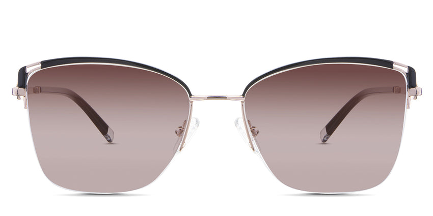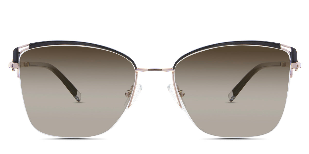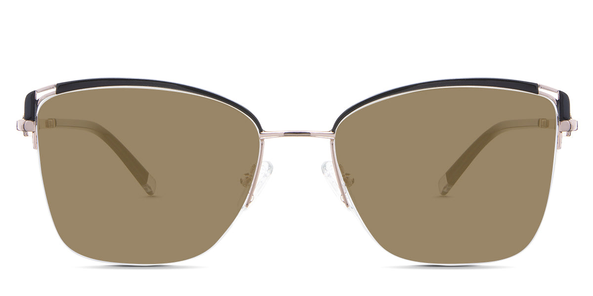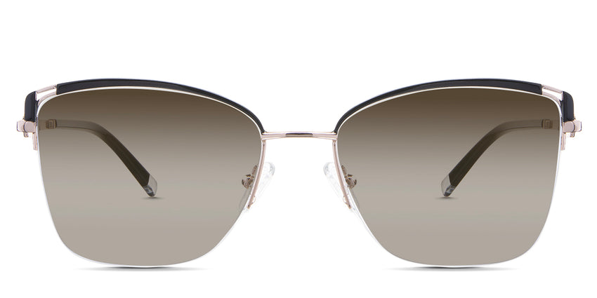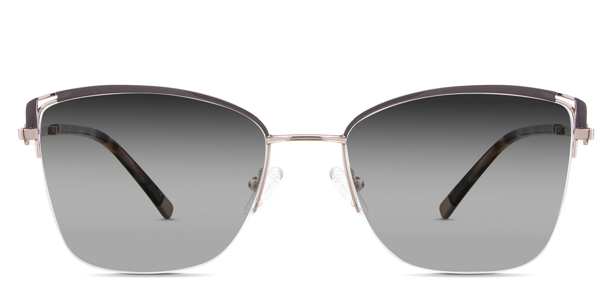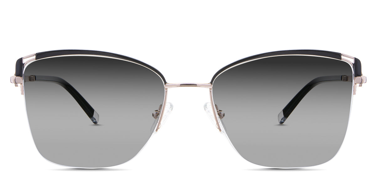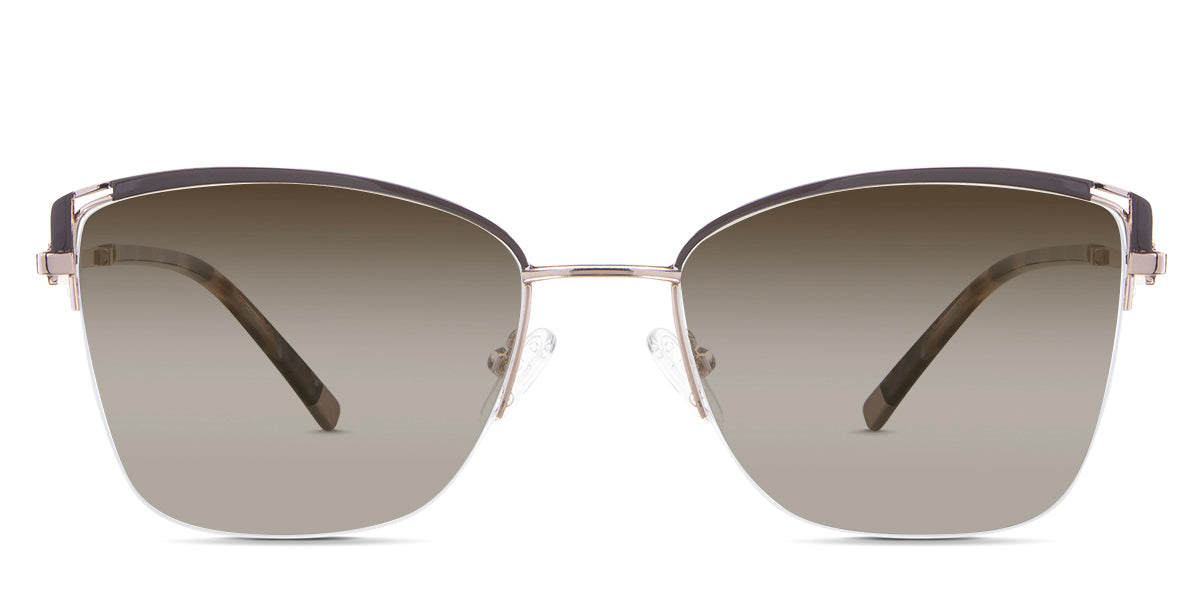 Designed for those who seek a delicate yet distinctive aesthetic, Phoebe checks all the boxes. Its square corners are gently rounded, softening the frame, while an elegant lift at the temples adds a touch of femininity and understated chic. A metal brow bar echoes the shape of the lenses, all complemented by a rimless lower half for a harmonious finish.