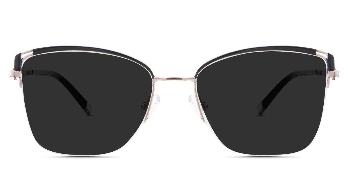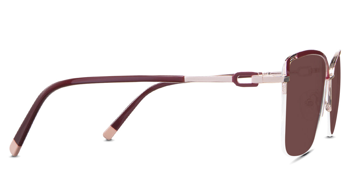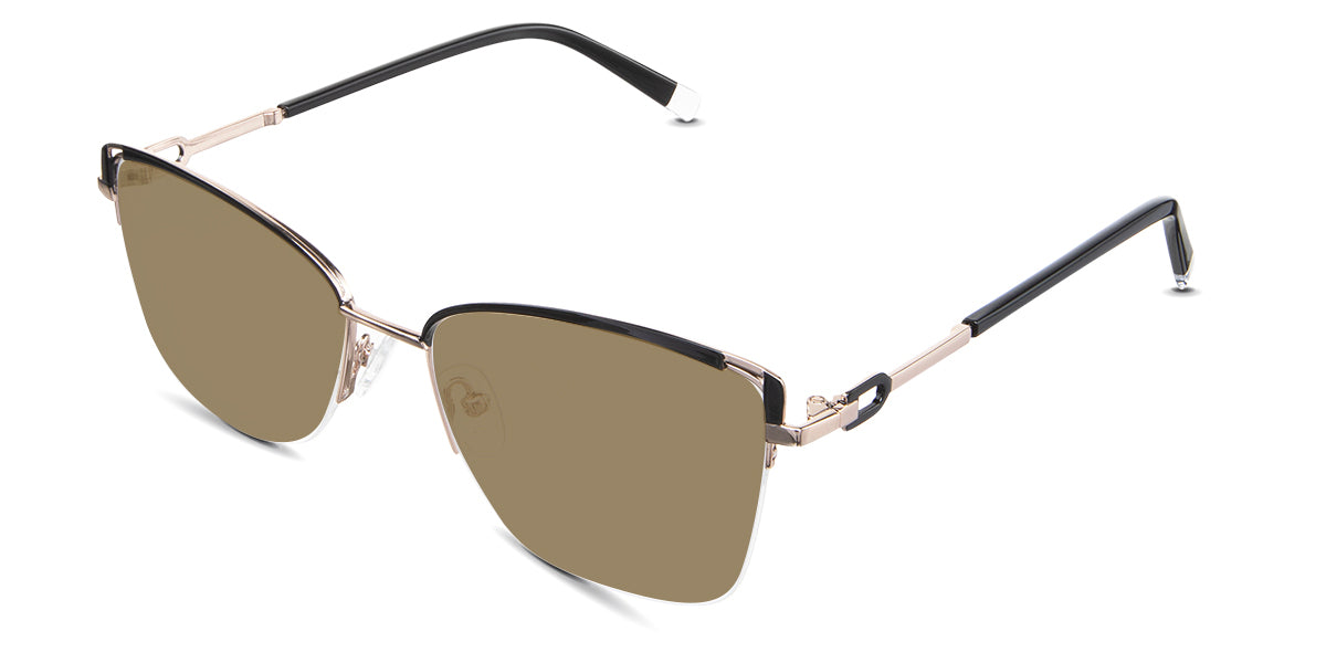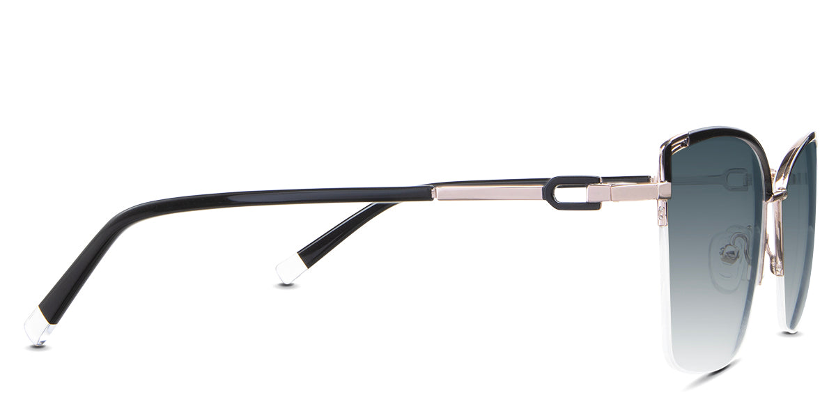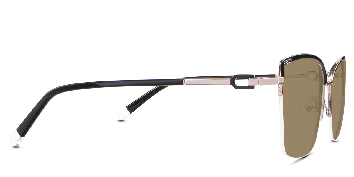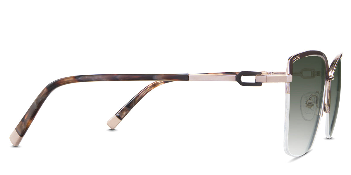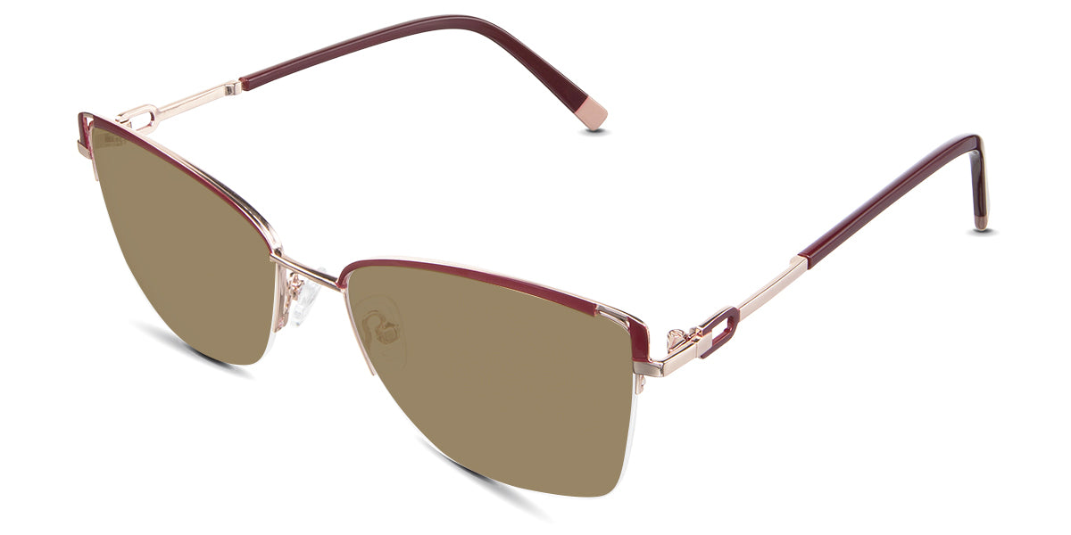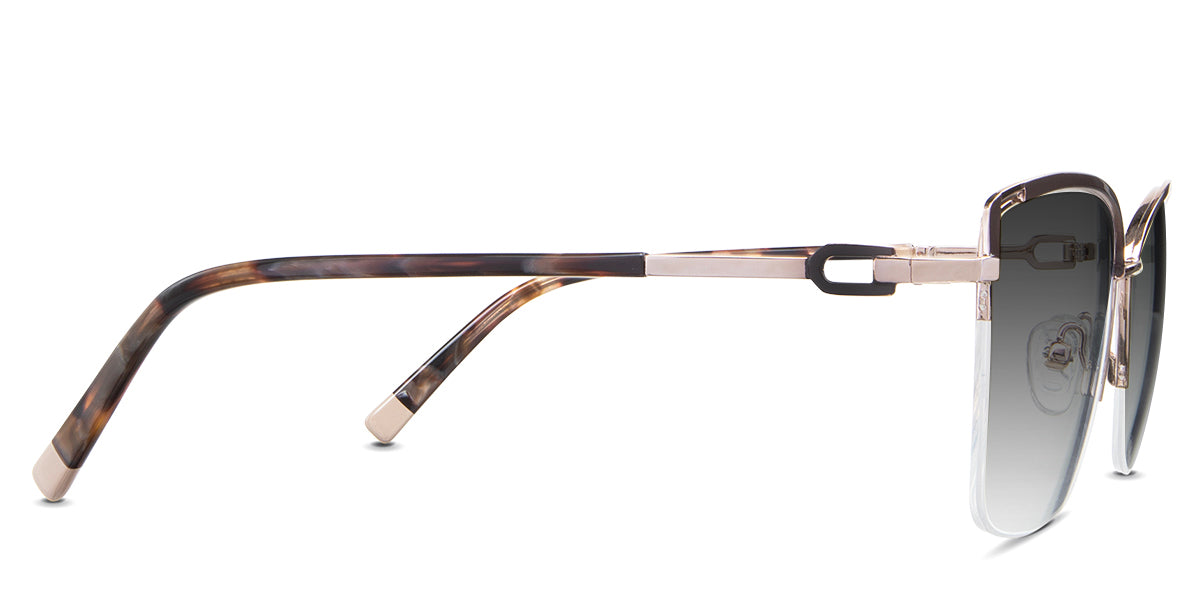 Designed for those who seek a delicate yet distinctive aesthetic, Phoebe checks all the boxes. Its square corners are gently rounded, softening the frame, while an elegant lift at the temples adds a touch of femininity and understated chic. A metal brow bar echoes the shape of the lenses, all complemented by a rimless lower half for a harmonious finish.