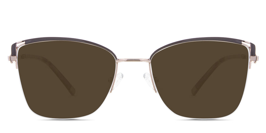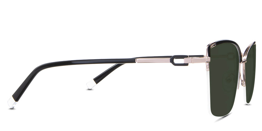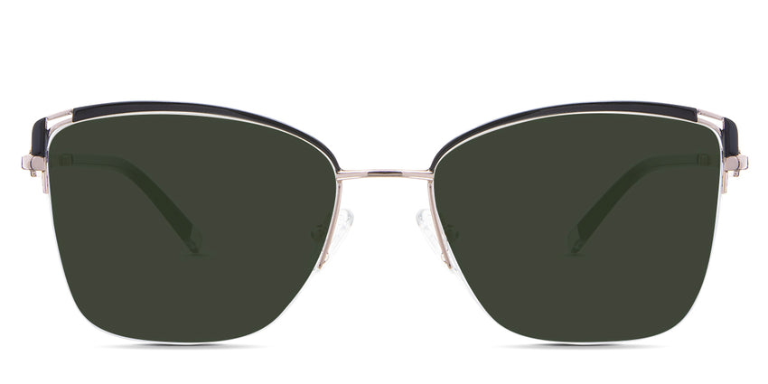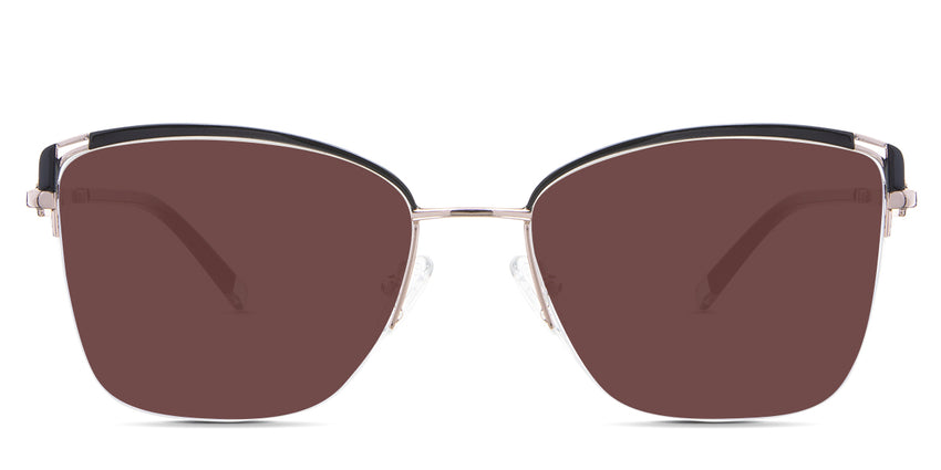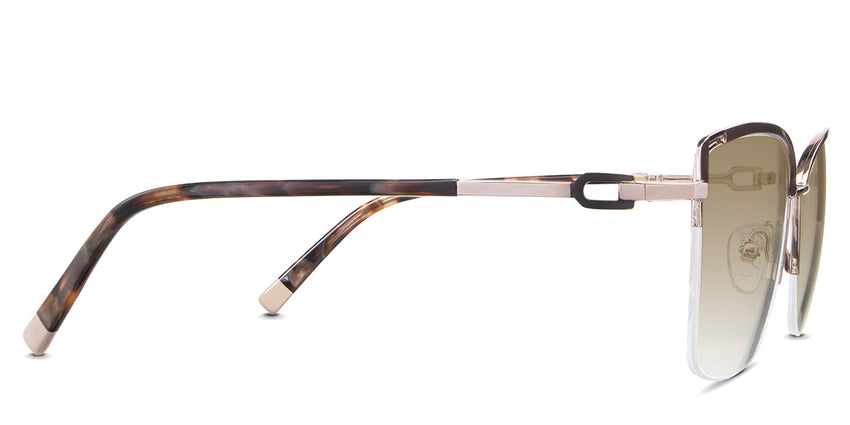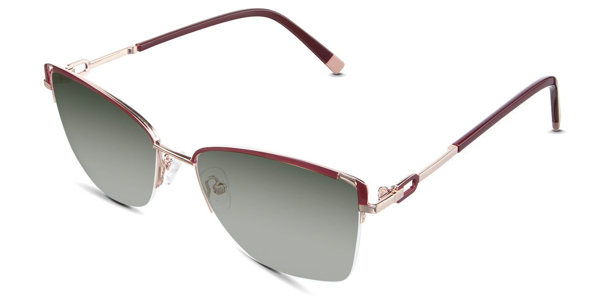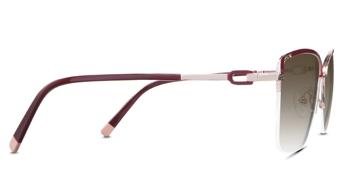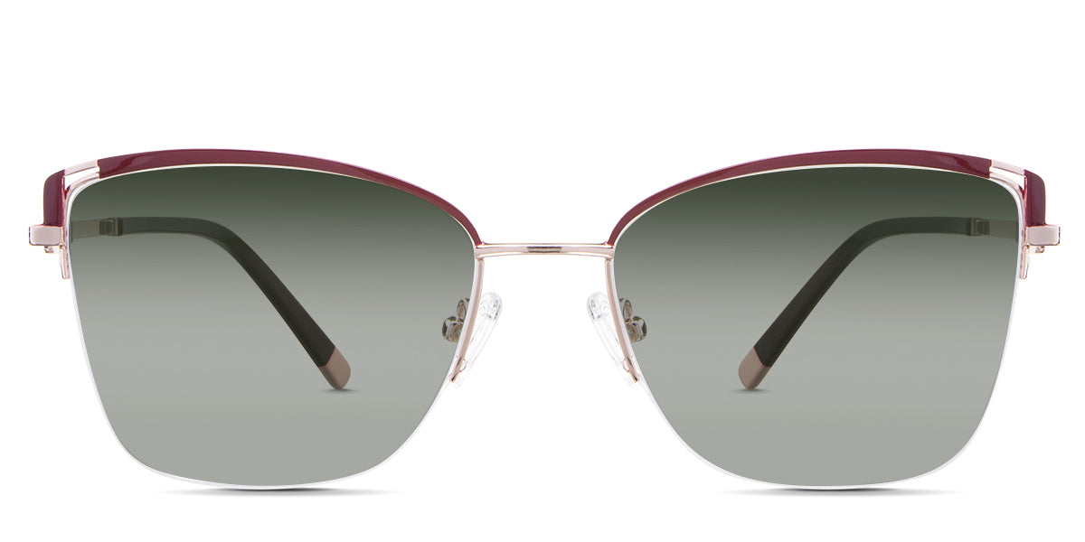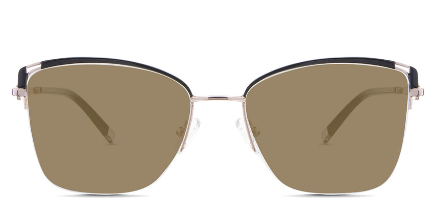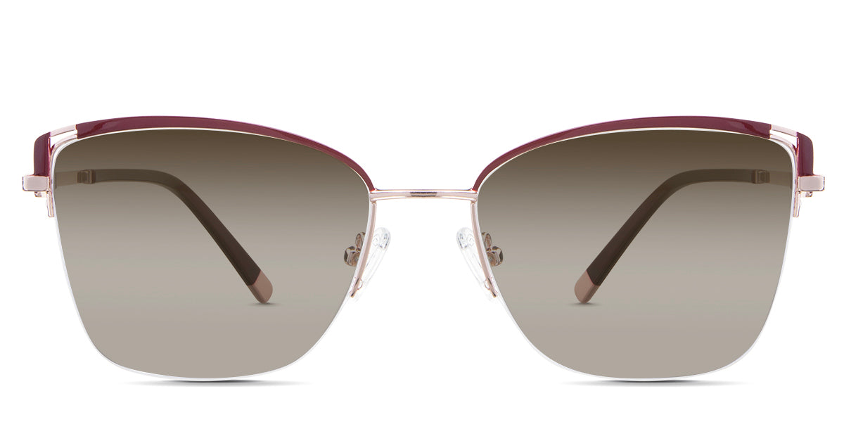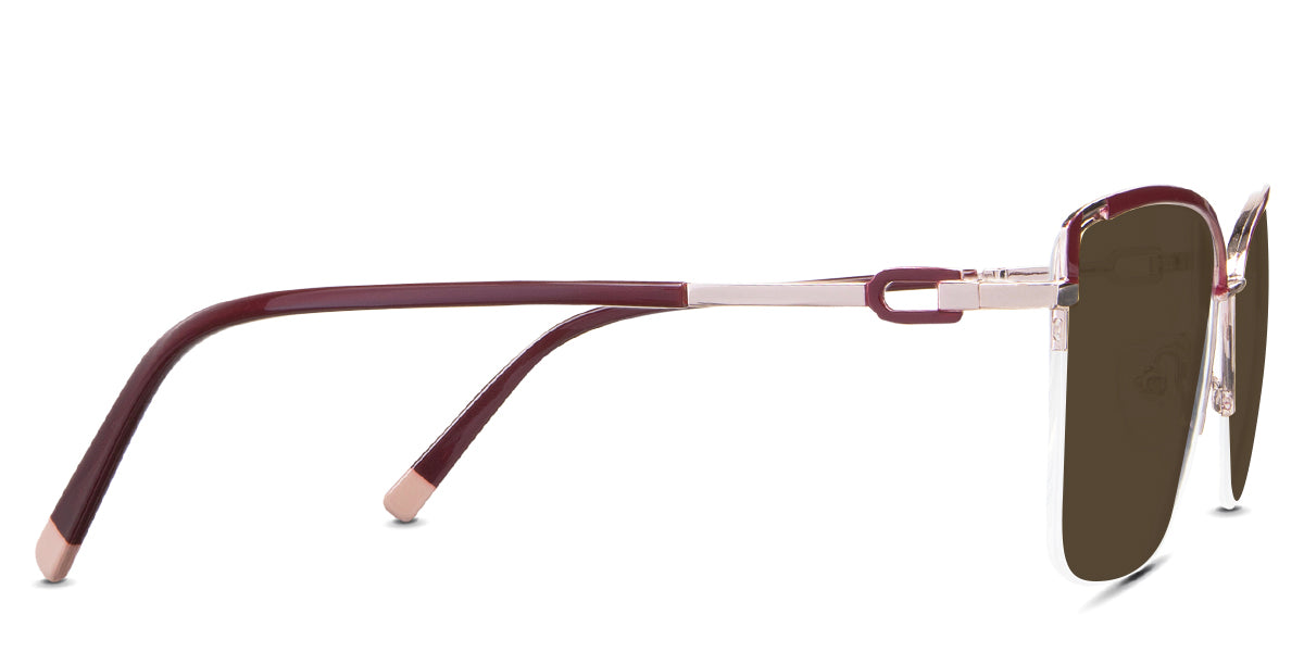 Designed for those who seek a delicate yet distinctive aesthetic, Phoebe checks all the boxes. Its square corners are gently rounded, softening the frame, while an elegant lift at the temples adds a touch of femininity and understated chic. A metal brow bar echoes the shape of the lenses, all complemented by a rimless lower half for a harmonious finish.