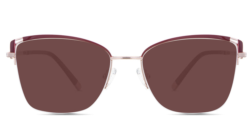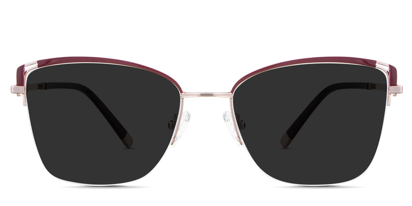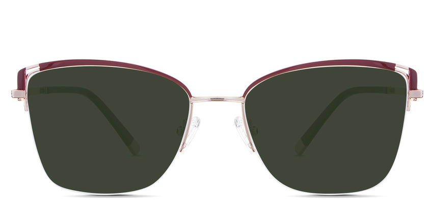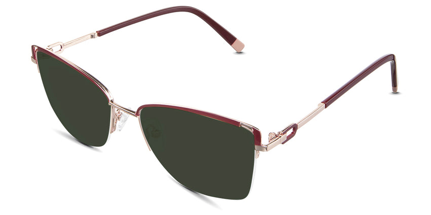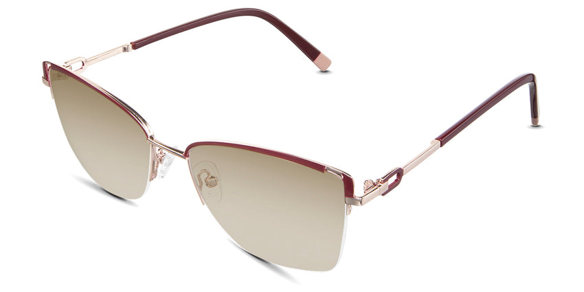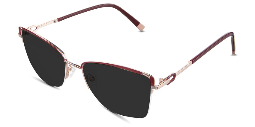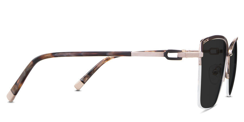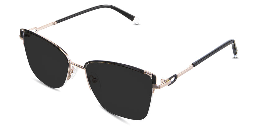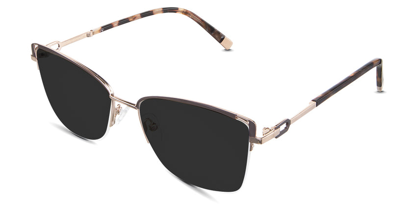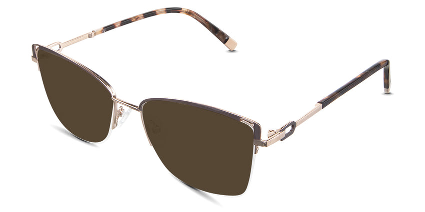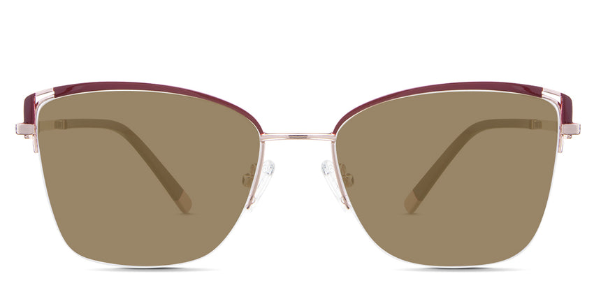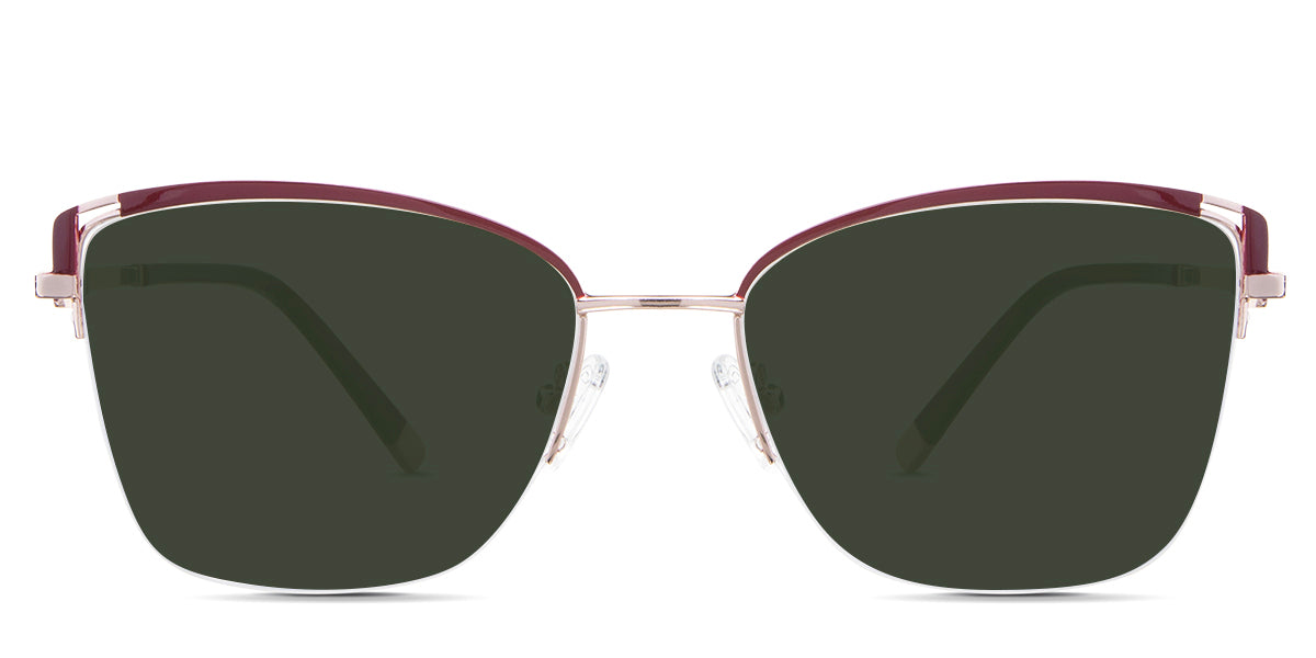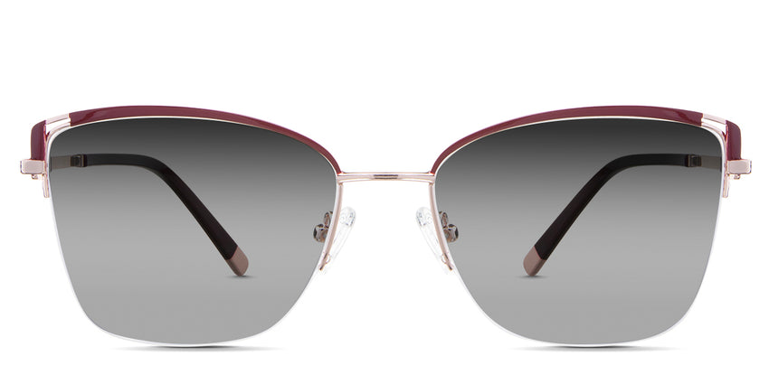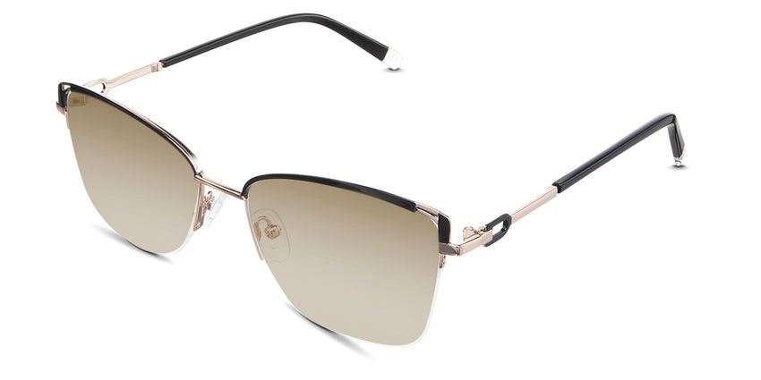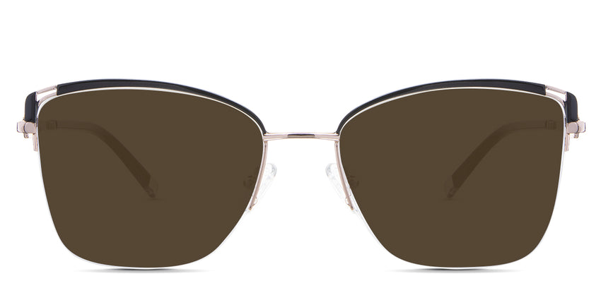 Designed for those who seek a delicate yet distinctive aesthetic, Phoebe checks all the boxes. Its square corners are gently rounded, softening the frame, while an elegant lift at the temples adds a touch of femininity and understated chic. A metal brow bar echoes the shape of the lenses, all complemented by a rimless lower half for a harmonious finish.
