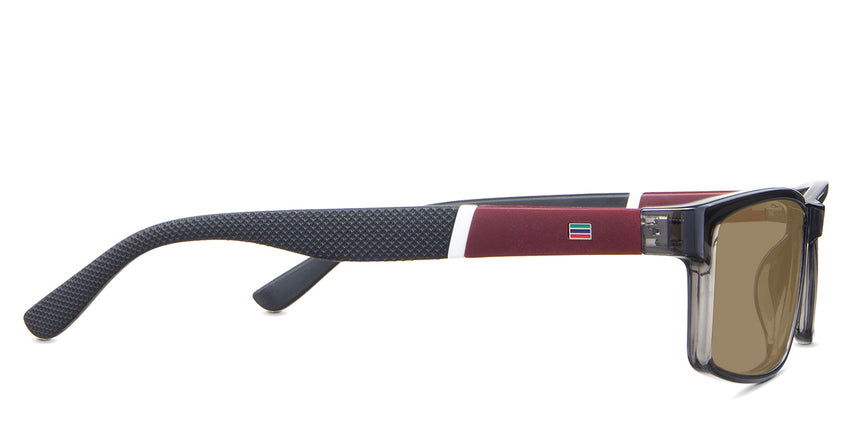 Raul Black Sunglasses Solid in the Burnish variant - it's a full-rimmed frame with a narrow-width nose bridge and multi-color arm.