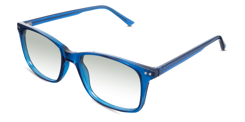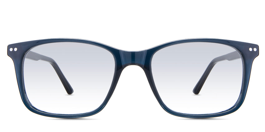Uriel black tinted Gradient in the Midnight variant - is a full-rimmed frame with decorative rivets in both end pieces and has a regular thick temple arm.