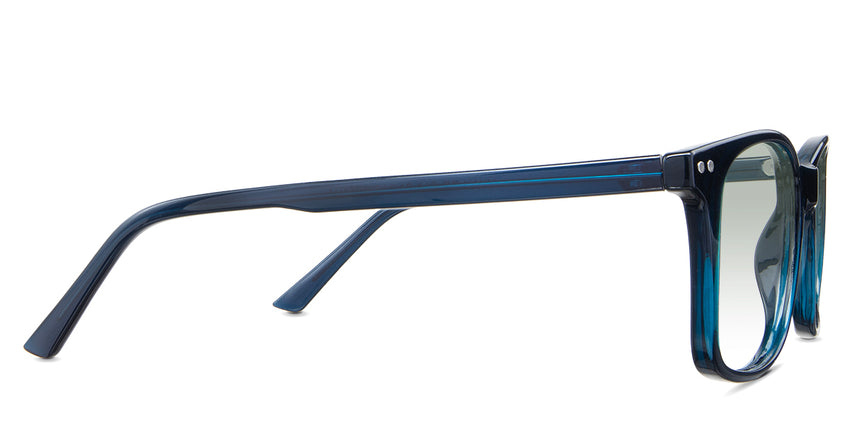 Uriel black tinted Gradient in the DR.Navy variant - it's an acetate frame with a wide nose bridge width and standard paddle temple tips.