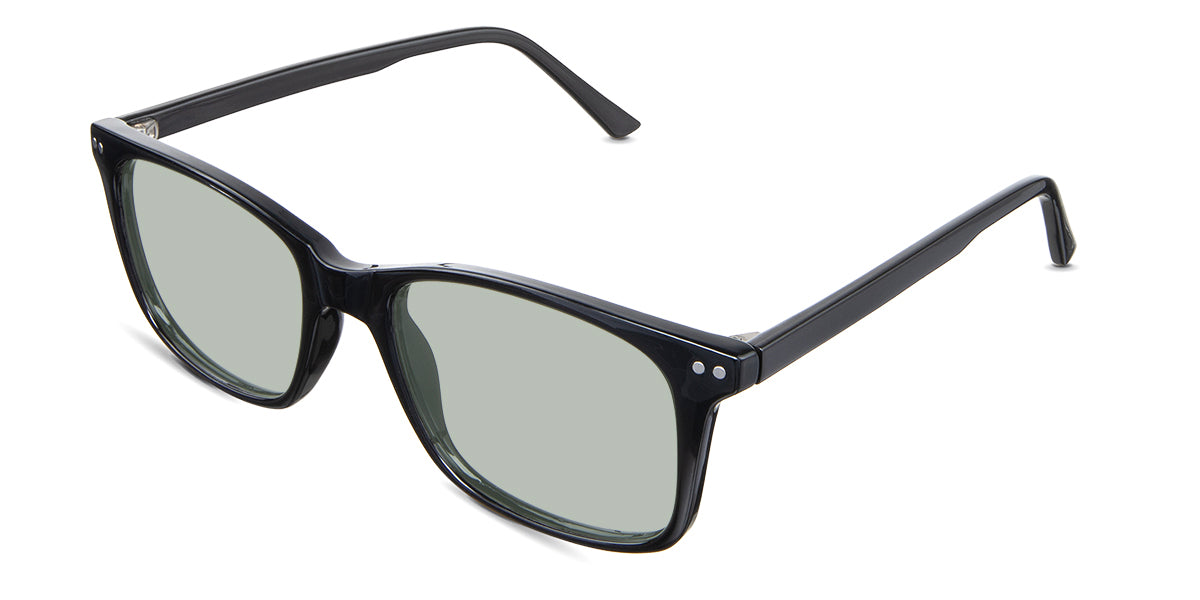 Uriel black tinted Standard Solid in the Midnight variant - is a full-rimmed frame with decorative rivets in both end pieces and has a regular thick temple arm.