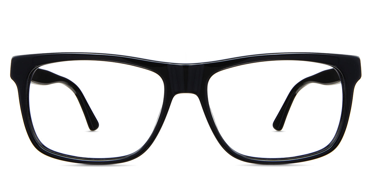 Wallis Eyeglasses in the midnight variant - it's a solid black color with a clear built-in nose pad.