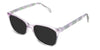 Upon UV exposure, lenses immediately change from clear to dark grey