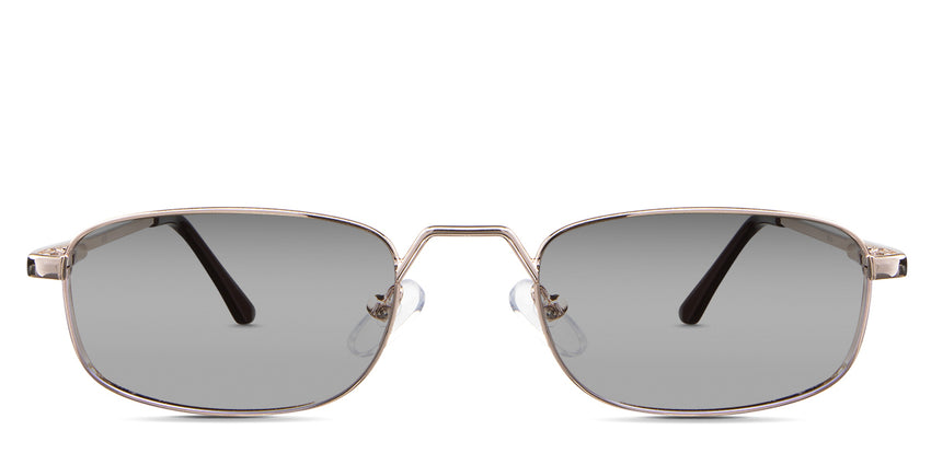 Zoey black tinted Gradient in the Gunmetal variant - is a full-rimmed metal frame with a high hat-shaped nose bridge and an acetate temple tip.