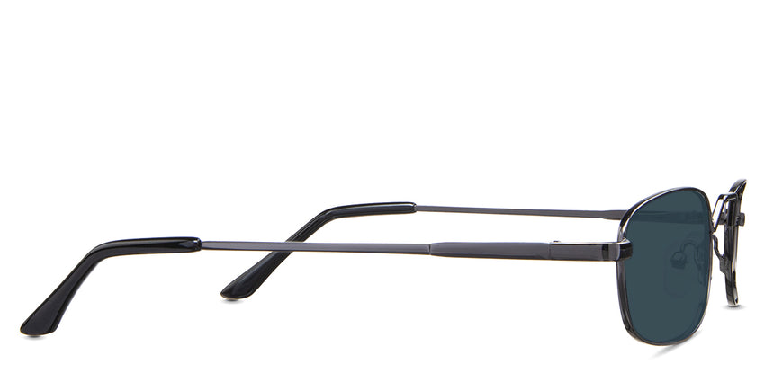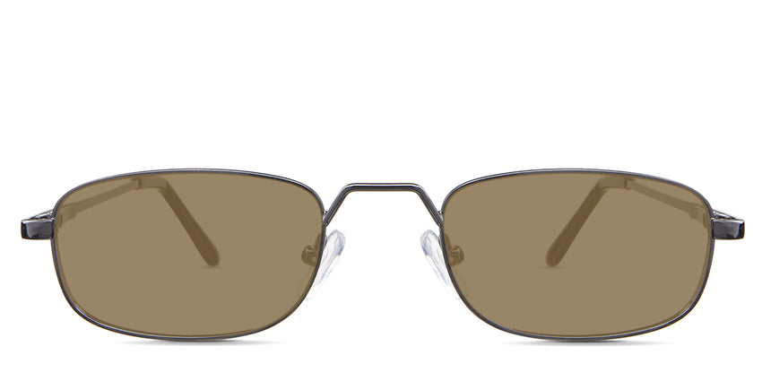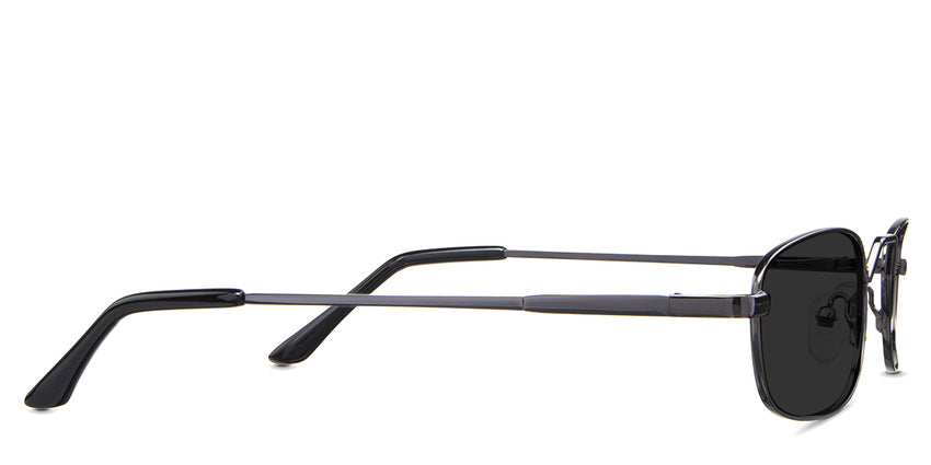 Zoey black tinted Standard Solid in the Gunmetal variant - is a full-rimmed metal frame with a high hat-shaped nose bridge and an acetate temple tip.